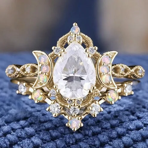 Get your this gold moon ring set now and shine beautifully at your next event!