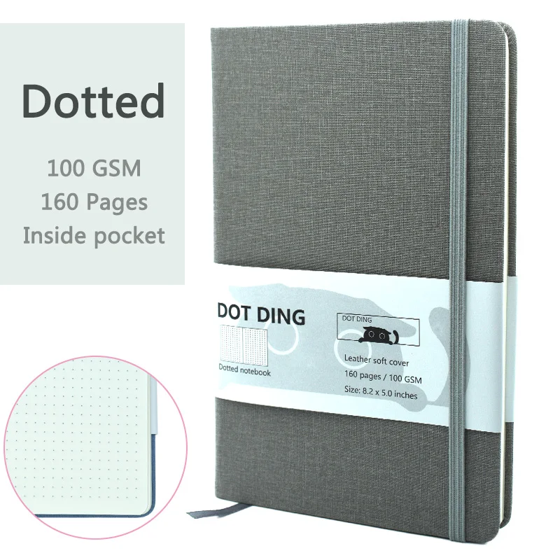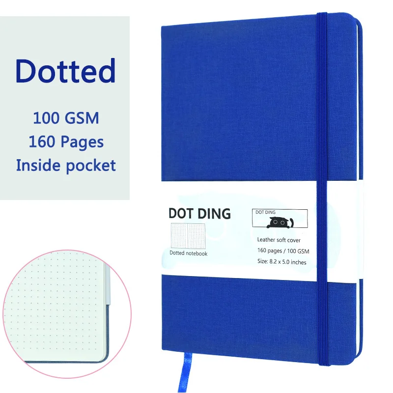 Imagine yourself crafting ideas, taking notes, or organizing plans with this sophisticated A5 dotted notebook. Its textured gray cloth hardcover exudes professionalism and subtle style. The smooth 100 GSM paper provides a premium writing experience, whether you're jotting quick notes or detailed sketches. The elastic blue band ensures your pages stay secure, while the matching ribbon bookmark makes it easy to pick up right where you left off. An inner pocket offers extra storage for loose notes or small essentials. Compact yet functional, this notebook complements both office and student environments, inspiring productivity and creativity every day. Its minimal yet refined design makes it a durable, stylish companion for your daily tasks.