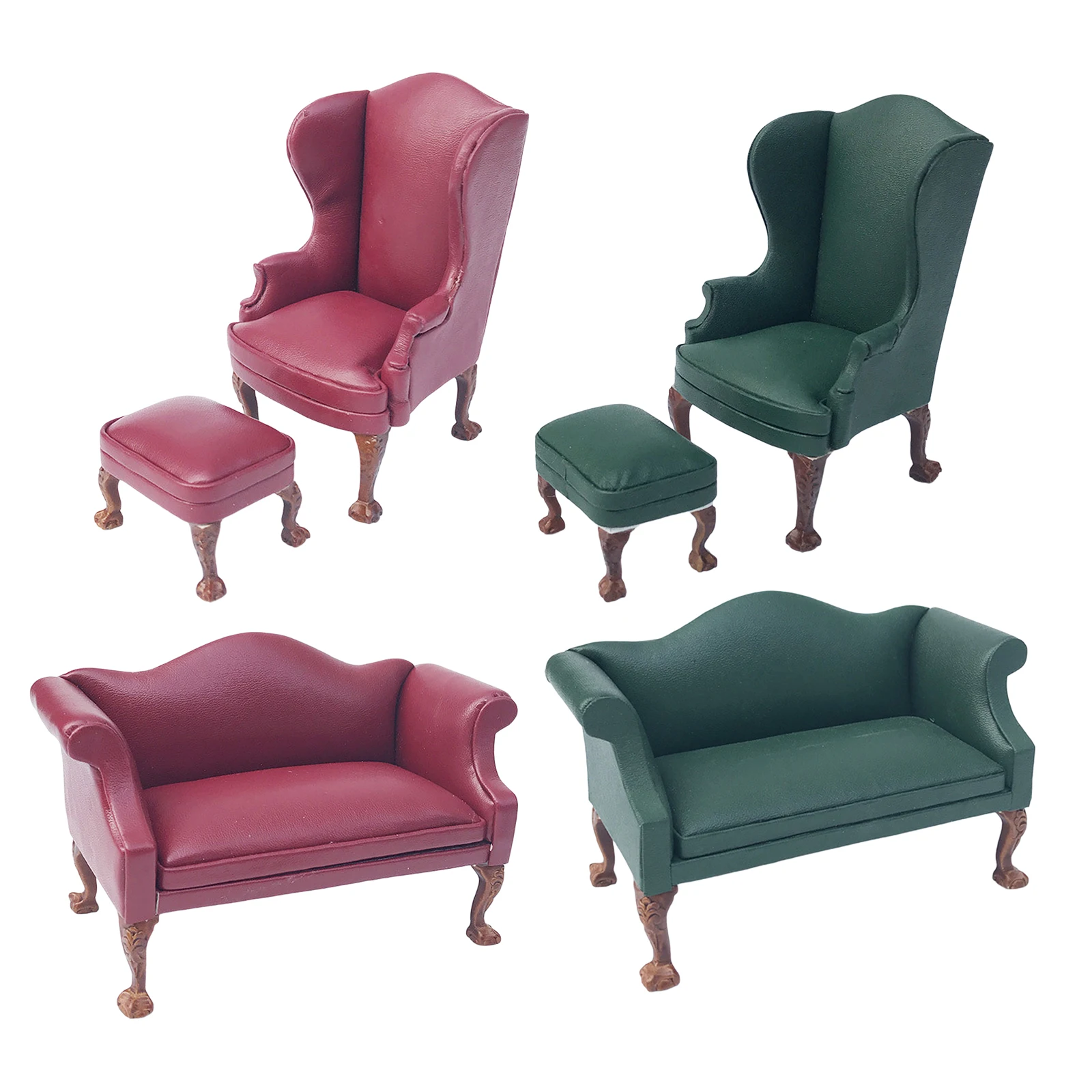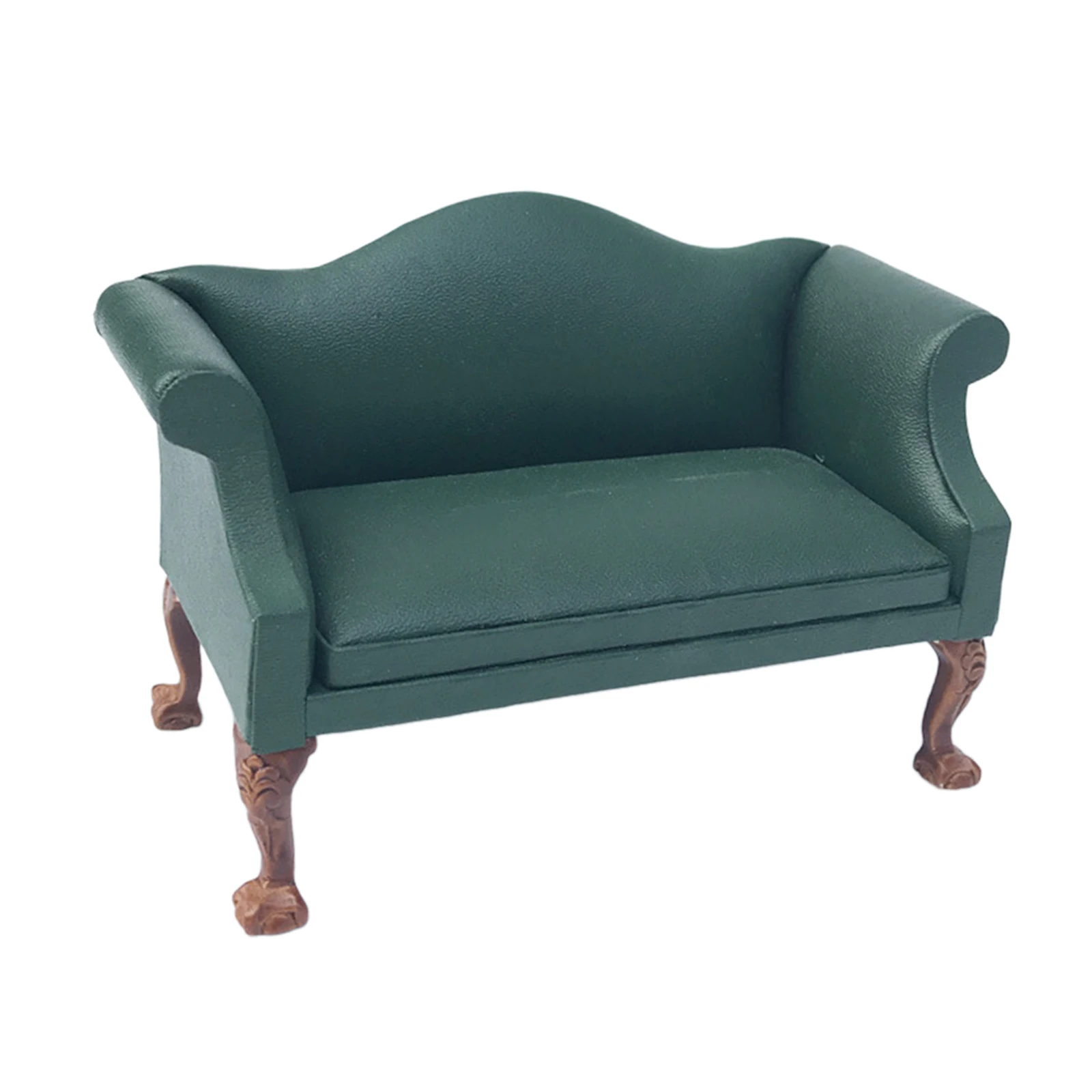 Enhance your dollhouse with this detailed 1:12 scale miniature love seat sofa and footstool set, crafted from wood and upholstered in textured PU leather. The love seat measures 8 x 13 x 6.5 cm (3.1 x 5.1 x 2.6″), featuring ornate, curved wooden legs and a vintage-inspired design in deep green or red options, adding a touch of elegance to any scene. The matching footstool is 4.5 x 3 x 3 cm (1.8 x 1.2 x 1.2″), perfectly complementing the set. This miniature exudes classic charm, perfect for dollhouse decor, photography, or gifting for collectors.