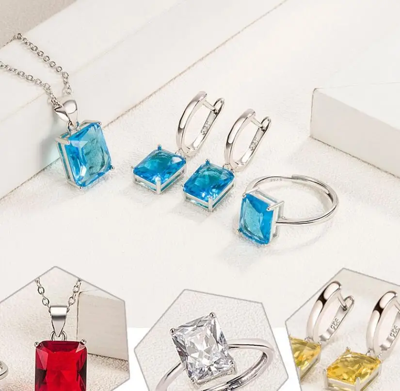 Imagine yourself wearing this stunning jewelry set, effortlessly elevating your look for any special occasion. Featuring a modern square design, this set includes a beautifully crafted necklace, matching earrings, and a resizable ring, all showcasing vibrant, emerald-green cubic zirconia stones. The Tibetan silver setting adds a sleek, metallic shine, creating a chic and sophisticated appearance. Perfect for weddings, parties, or holiday gifts, this fashionable ensemble complements any outfit. The different metal color options—blue, green, red, white, and yellow—allow you to choose your favorite style to match your personality. Experience the blend of trendy design and timeless elegance with this eye-catching jewelry set, making you feel confident and radiant wherever you go.