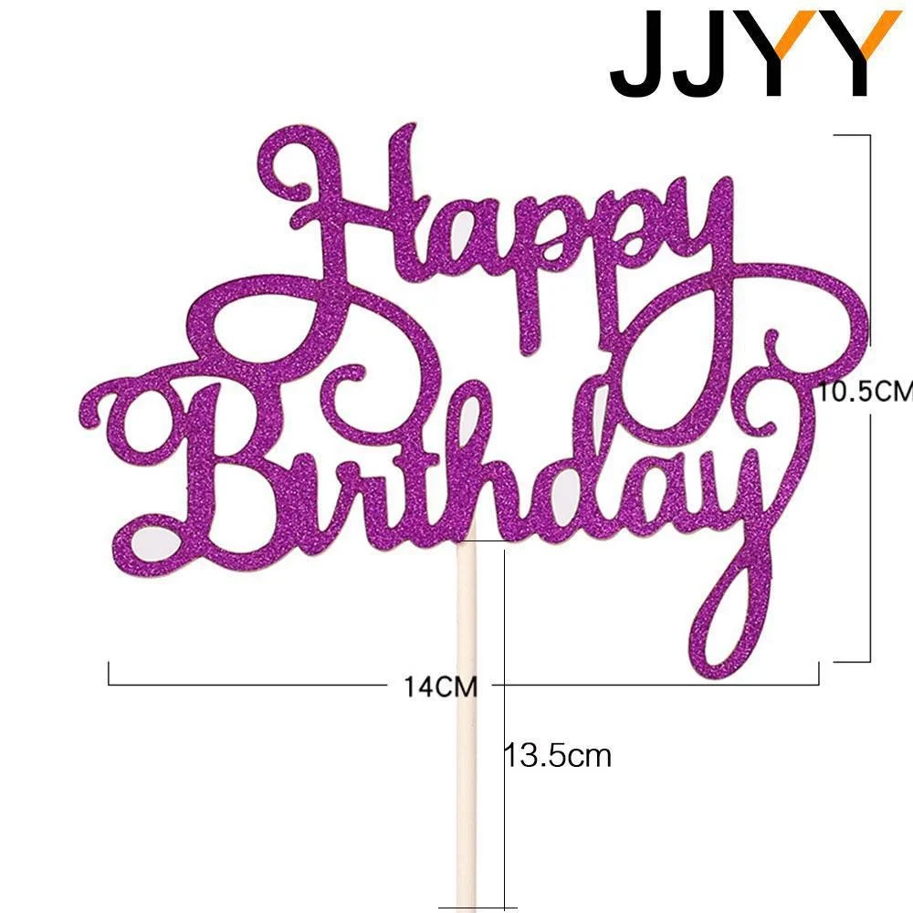Celebrate your special day with these beautiful “Happy Birthday” cake toppers that add a touch of elegance and charm to any birthday cake. Crafted from durable, thick paperboard, each topper features a stylish cursive script with flowing loops and decorative swirls, reflecting light with a glittery, shiny finish. Available in vibrant colors—gold, silver, purple, blue, and black—these toppers will seamlessly blend with any party theme while catching the eye. Measuring approximately 14 cm in length and 10.5 cm in width, they comfortably adorn a variety of cake sizes. With plastic sticks of about 13.5 cm, these toppers are easy to insert for a secure and stylish decoration that will impress all your guests.