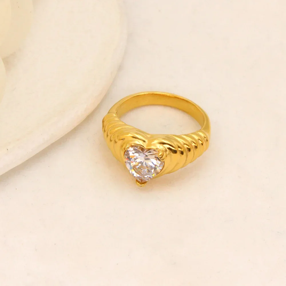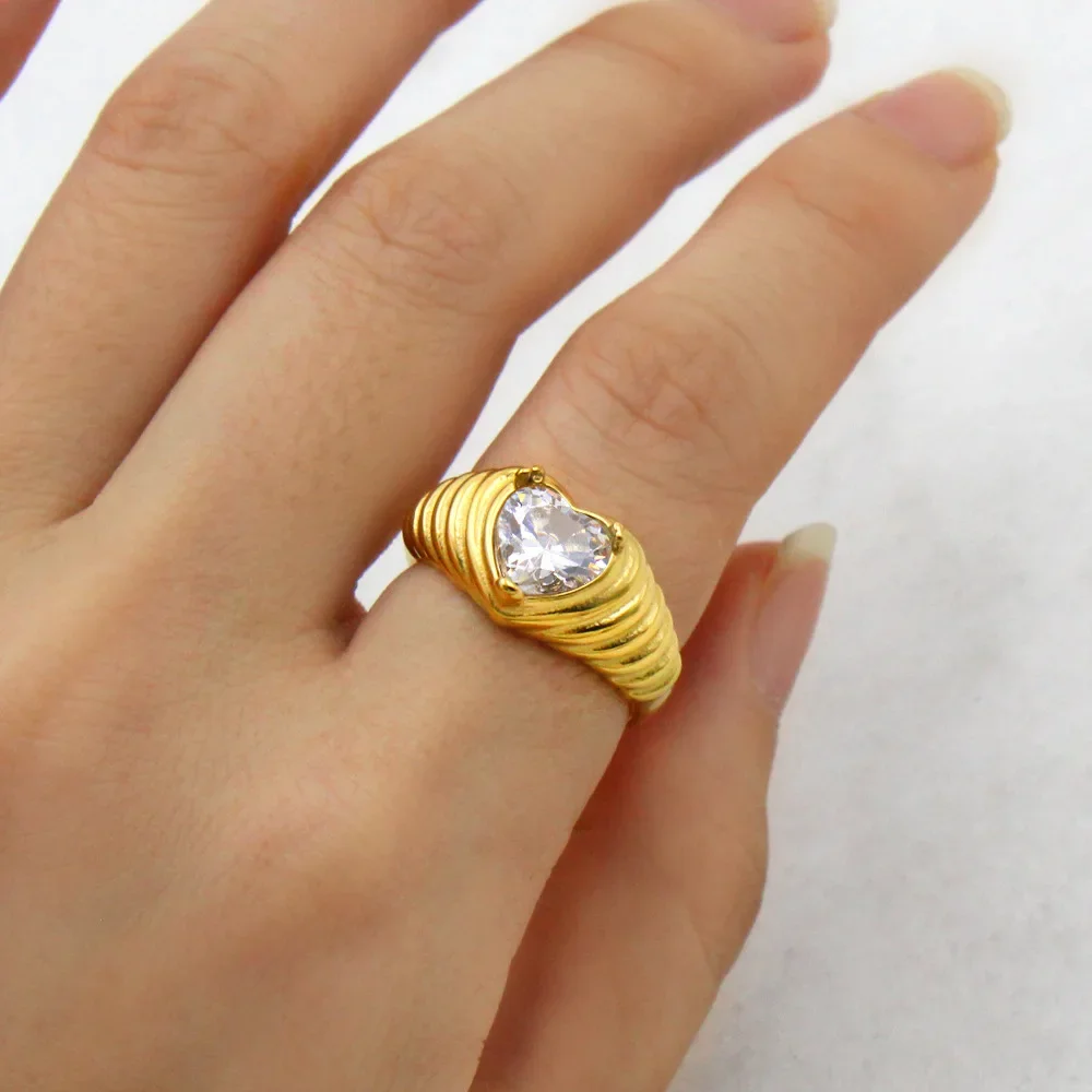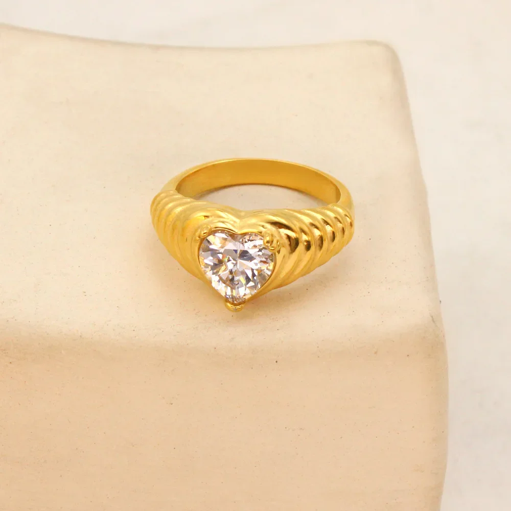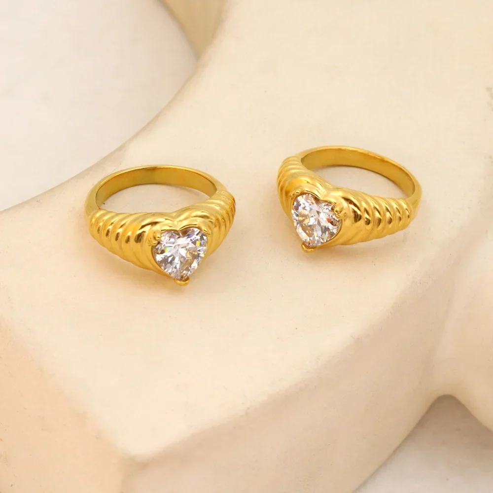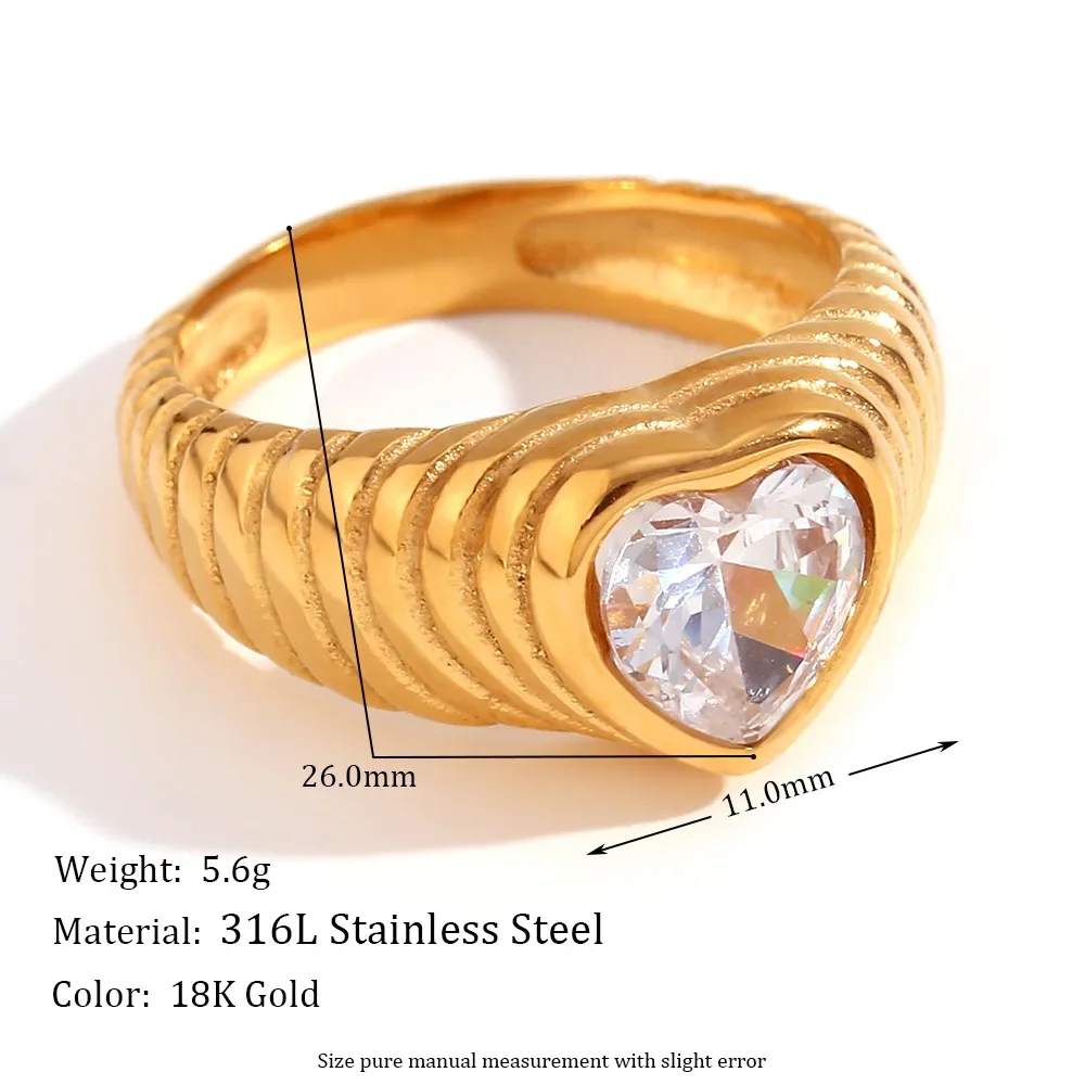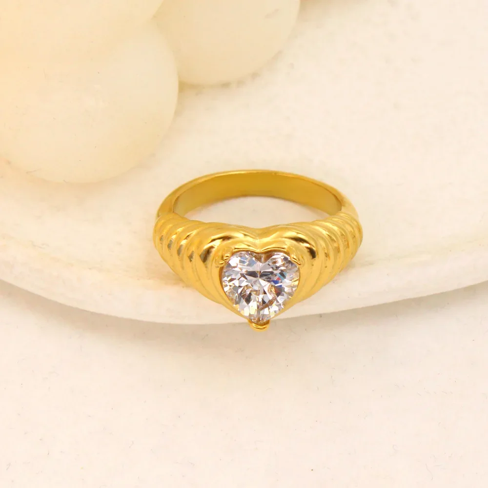 Elegant Heart-Shaped Cubic Zirconia Stainless Steel Ring