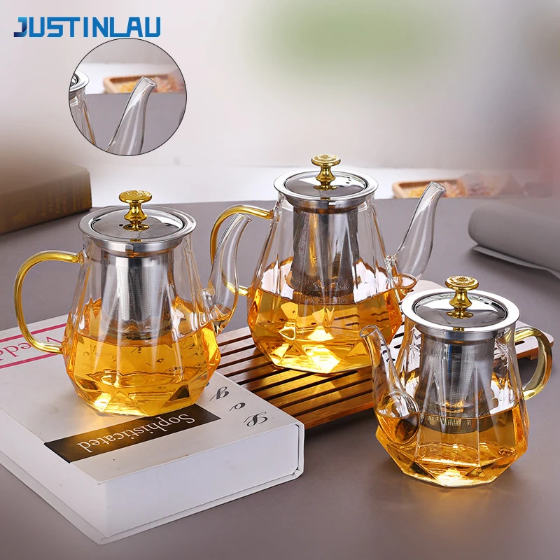 - Technical specifications include: heat-resistant borosilicate glass, stainless steel infuser, gold accents, and sizes from 400ml to 1000ml, making it a versatile addition to your kitchenware collection.
