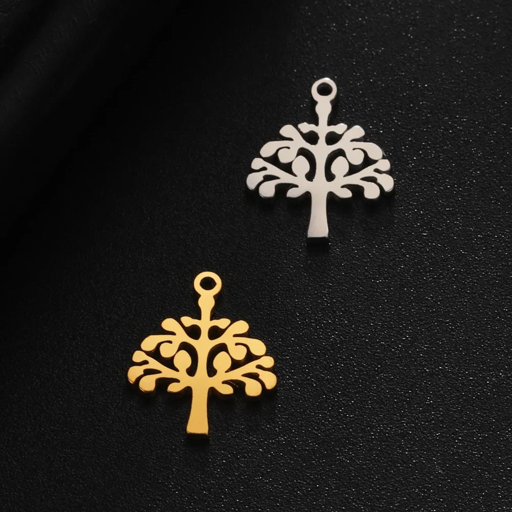 Discover the beauty of this collection of five stunning jewelry charms, perfect for creating personalized earrings, necklaces, and bracelets. Crafted from high-quality stainless steel, these charms feature a polished, reflective surface with vibrant steel and luxurious gold vacuum plating options. The designs include symbolic motifs such as delicate music notes, intricate trees, serene crescent moons paired with stars, directional compass symbols, and playful animal paw prints. Their versatile style blends modern elegance with lively, nature-inspired elements, allowing you to express your unique personality and style. These charms are hypoallergenic, highly durable, resistant to rust, corrosion, deformation, and fading. Ideal for both casual and sophisticated jewelry projects, they represent a timeless addition to your collection.