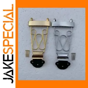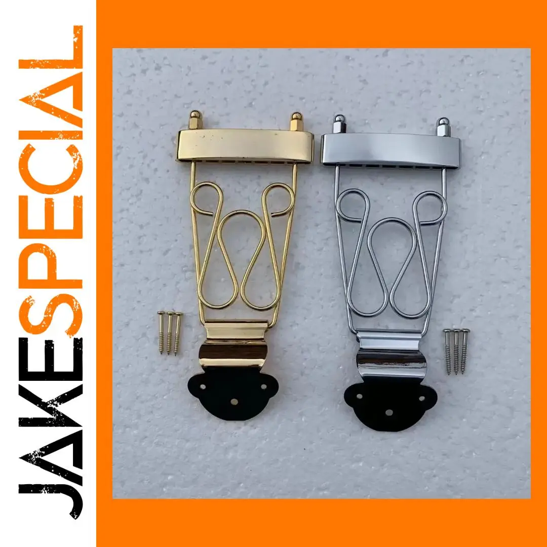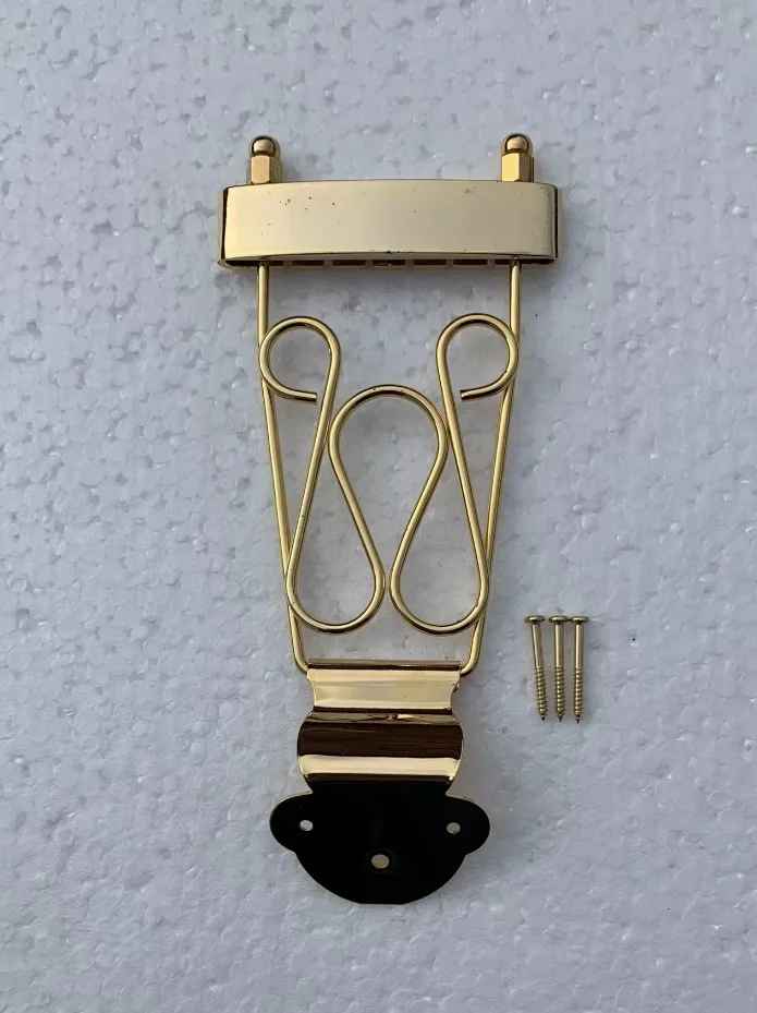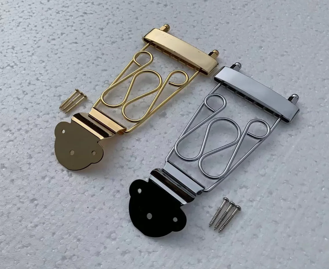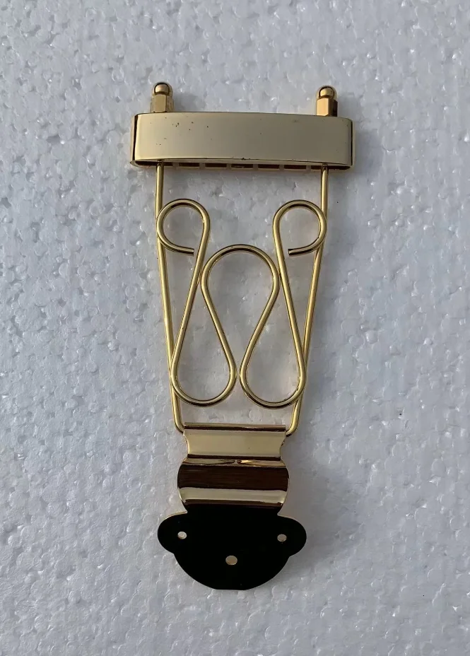 Imagine enhancing your six-string electric jazz guitar with this high-quality tailpiece, designed to blend durability and style seamlessly. Crafted in Korea, this genuine accessory features two stunning finishes: luxurious gold and sleek chrome, both boasting reflective surfaces that catch the eye. Its streamlined structure, including a rectangular mounting section and support frame, ensures both aesthetic appeal and solid performance. The decorative wire supports add a touch of craftsmanship, complementing the overall modern look. The black rubber mounting base provides stability and protection to your guitar's body. Whether upgrading or replacing your current tailpiece, this component offers excellent reliability and visual sophistication, allowing you to express your musical style with confidence and elegance.