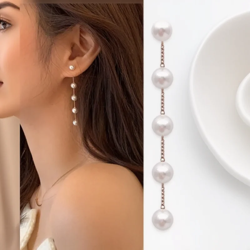 Elegant Long Chain Tassel Pearl Earrings for Women