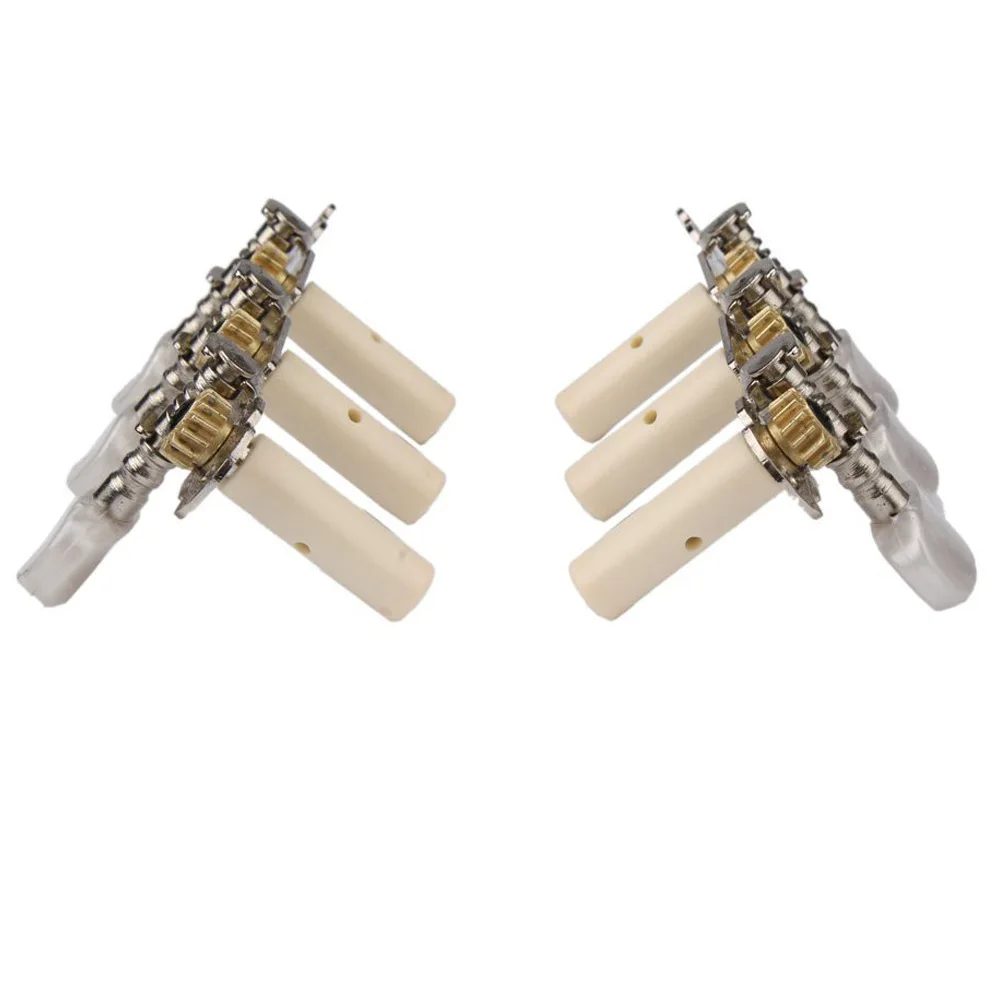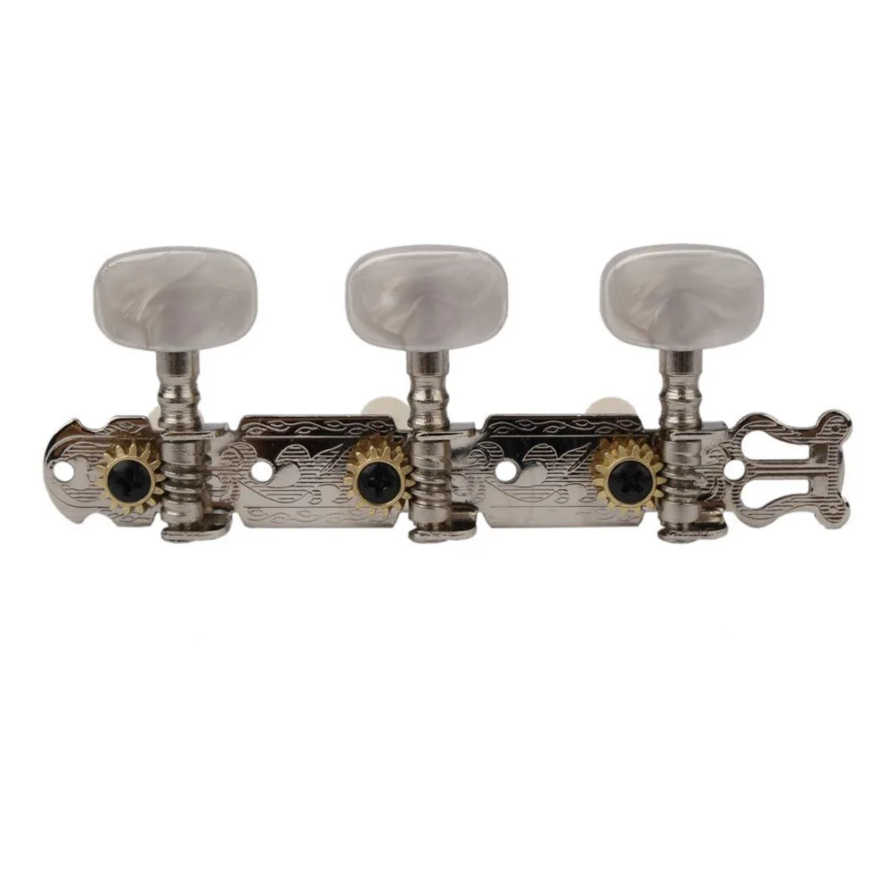 Step into a world of sophistication with this this long triple mica round head guitar knob. Designed to elevate the aesthetic of your guitar, it features a unique combination of durable metal and glossy plastic, creating an eye-catching contrast. The luminous pearlescent tuning knob adds a touch of elegance with its mother-of-pearl-like finish, blending vintage charm with modern craftsmanship. Intricately engraved metal surfaces and polished gold-tone gear housings evoke a classic vibe that complements both vintage and contemporary guitars. Sized at 11.6 cm x 4 cm x 4 cm, it’s designed to fit standard classical and acoustic guitar models. Installing this piece transforms your instrument, giving it a refined and personalized look that reflects your style.