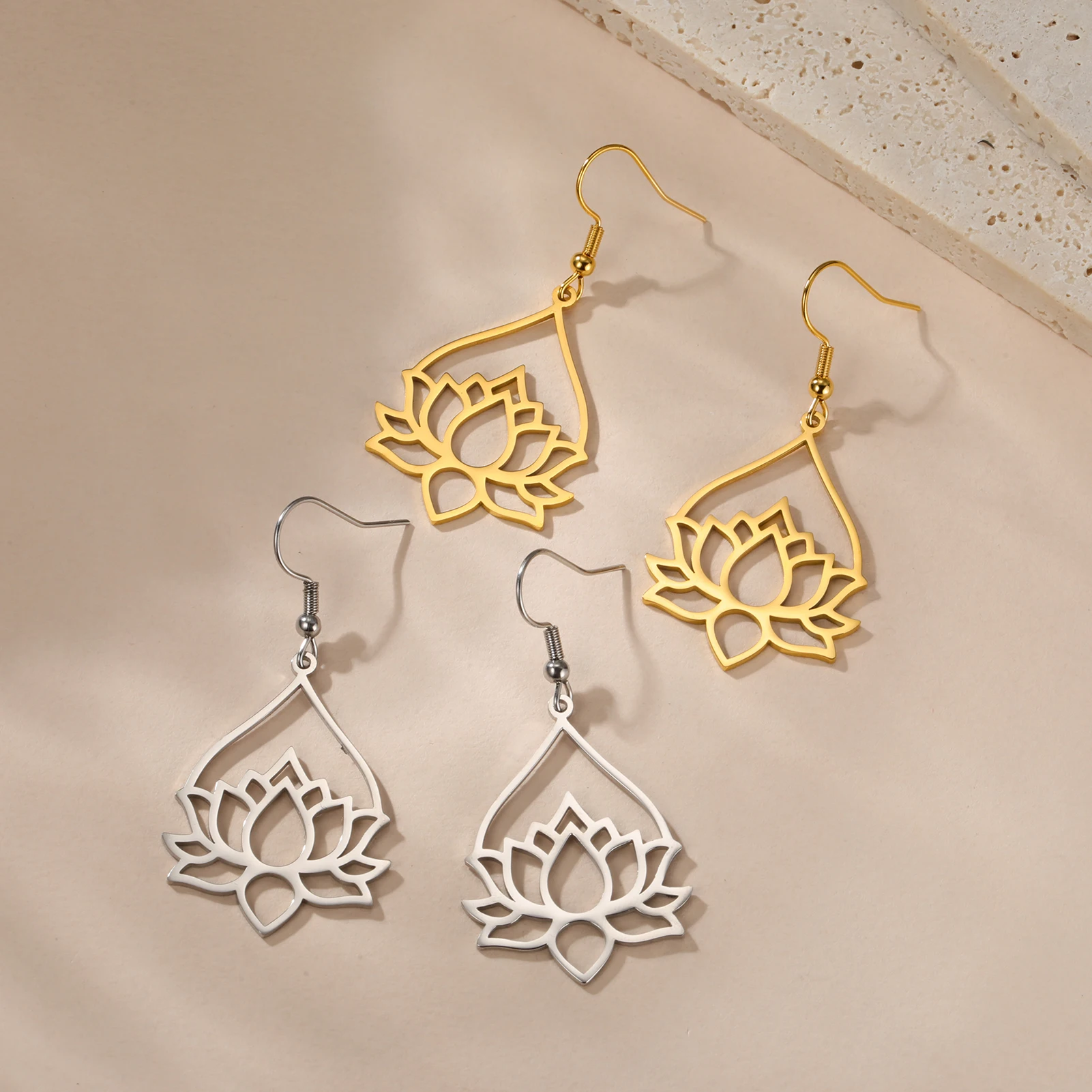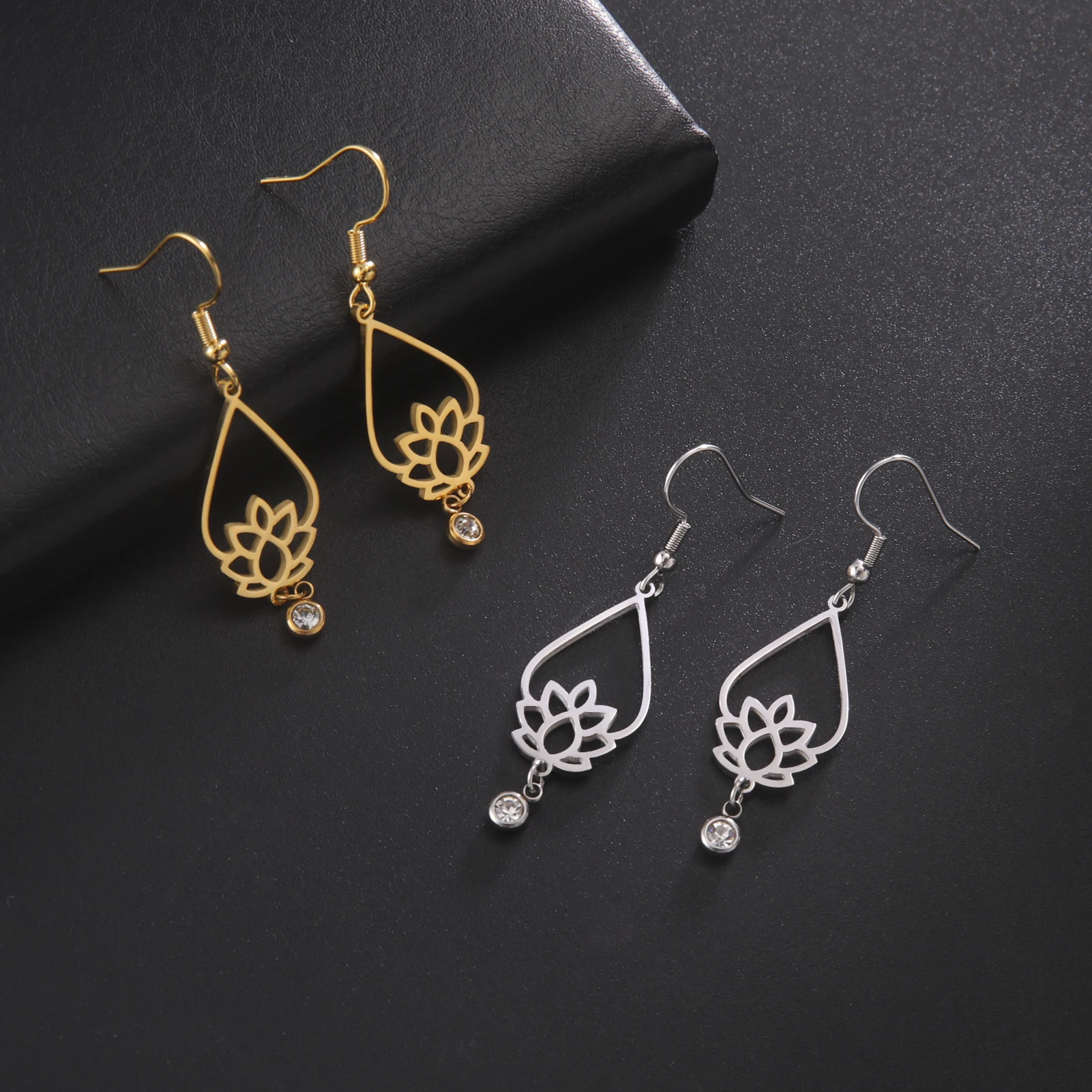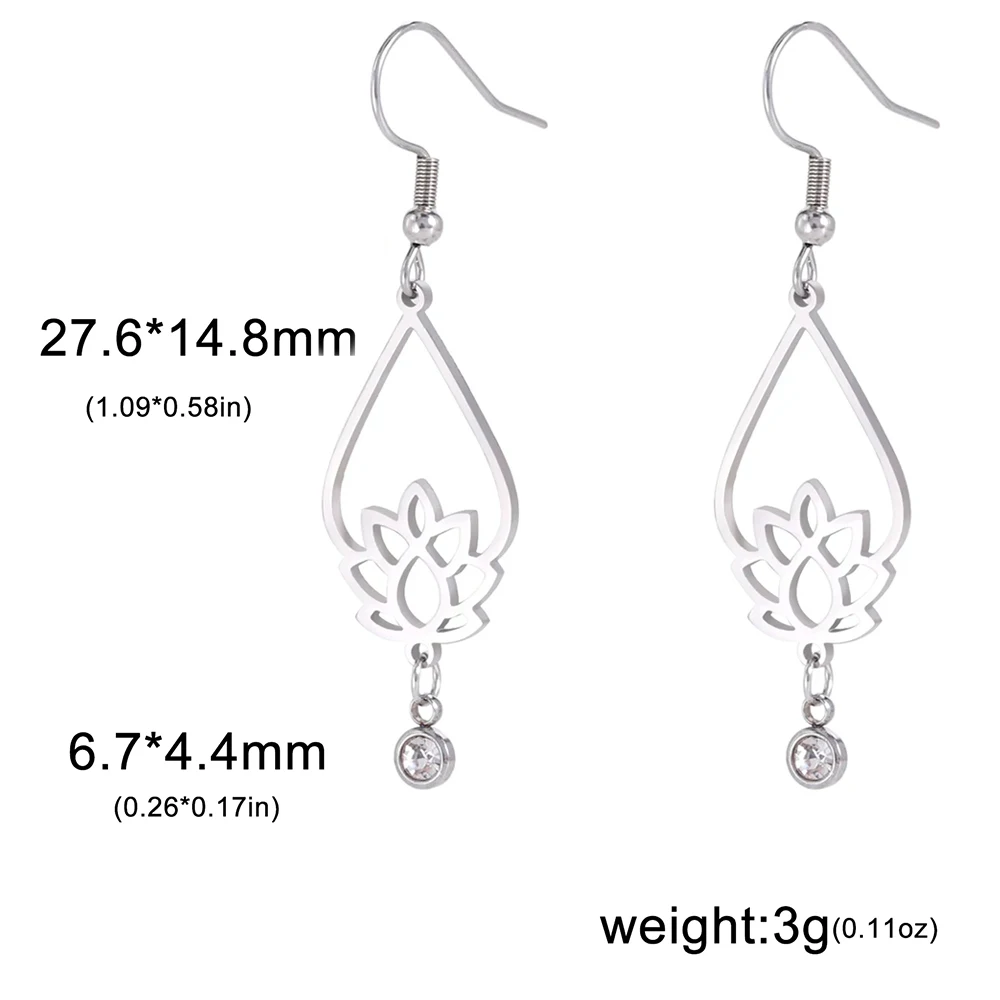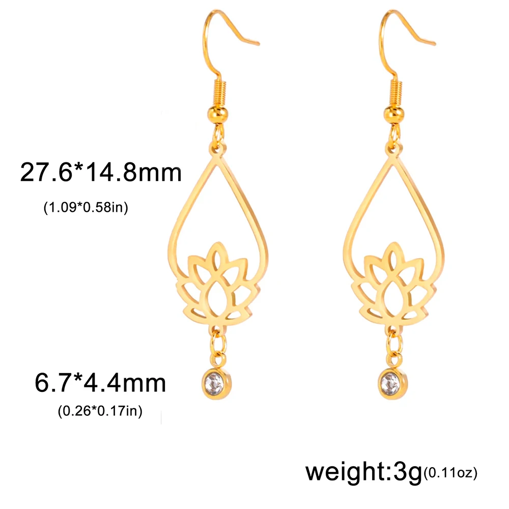 Enhance your jewelry collection with these elegant stainless steel drop earrings featuring a vintage-inspired lotus flower design accented with rhinestones. Available in three stylish variants—gold color (A Gold Color, B Gold Color, C Gold Color), steel (A Steel, B Steel, C Steel), and a combination—each showcases a polished water drop shape that blends ethnic and retro aesthetics. Hypoallergenic, non-tarnishing, and resistant to oxidation and fading, these earrings are perfect for daily wear or special occasions such as weddings, birthdays, and parties. Their timeless style makes them an ideal gift for women and girls seeking refined, durable, and comfortable jewelry.