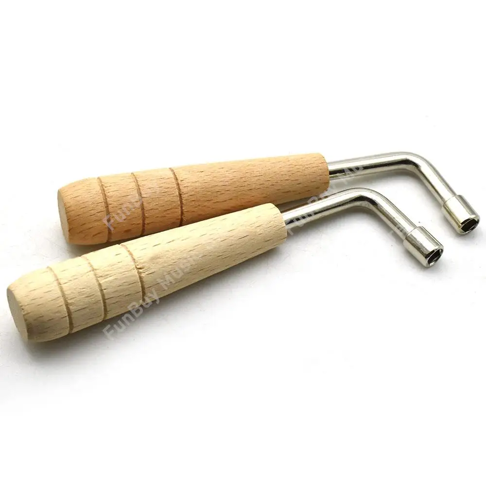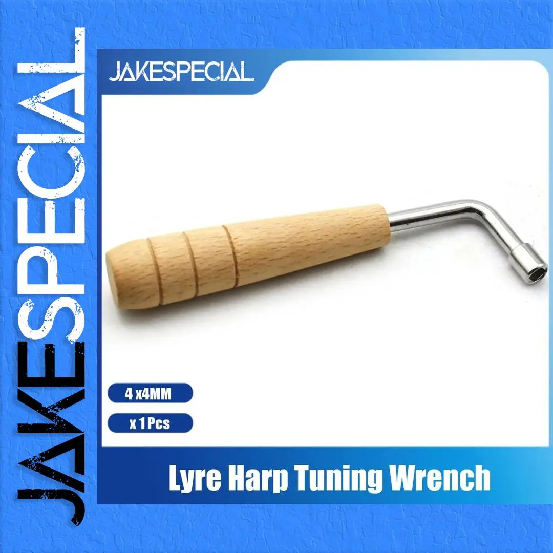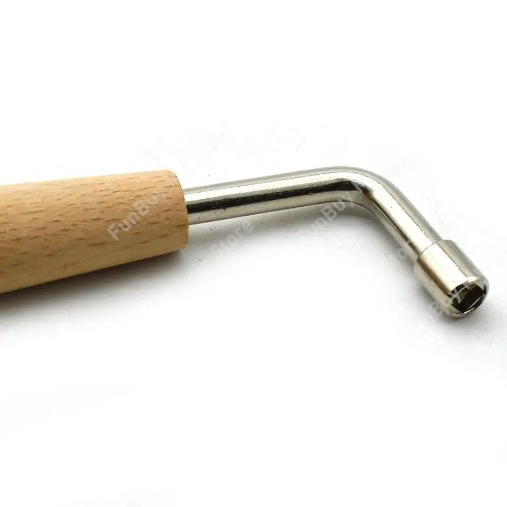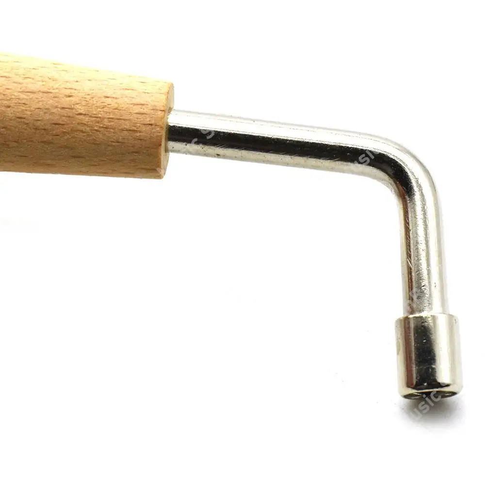 Enhance your lyre harp maintenance with this classic Lyre Harp Tuning Wrench, featuring a durable metal and light-colored wooden handle. The ergonomic handle, measuring approximately 4x4mm with three shallow grooves for a comfortable grip, seamlessly connects to a shiny silver-colored L-shaped metal shaft—designed for precise tuning adjustments. The cylindrical socket at the end, with a 4mm diameter, ensures a secure fit onto tuning pegs. Lightweight and easy to handle, this tuning tool combines natural warmth with sleek metal elegance, making it an essential accessory for accurate and effortless lyre harp tuning. Perfectly crafted for precision and longevity.