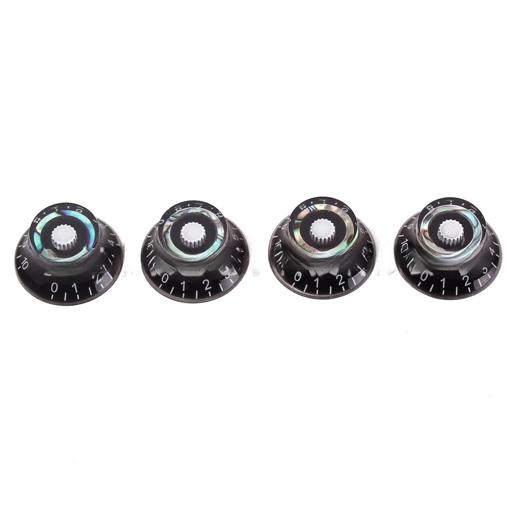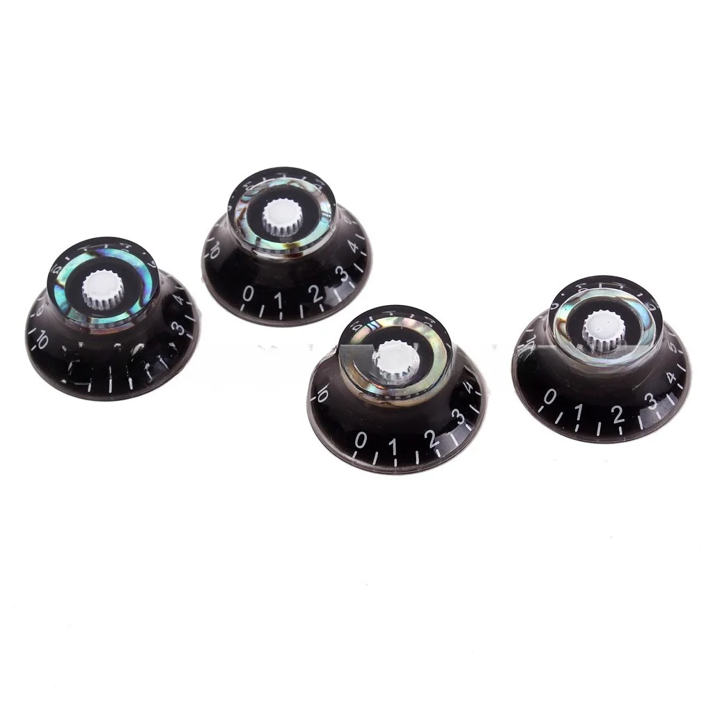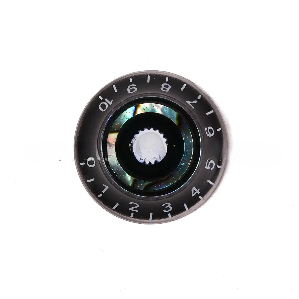 Elevate your guitar’s aesthetic with this set of four metal control knobs featuring a sleek black abalone design and circular accents. Designed for speed, volume, and tone adjustments, each knob combines functionality with a stylish appearance. The slightly conical shape, wider at the base and tapering upward, ensures a comfortable grip and easy handling, while the reflective abalone inlay adds an iridescent rainbow sheen for a sophisticated look. Perfect for customizing your guitar, these knobs are durable and easy to install, offering both visual appeal and reliable performance without the need for batteries—ideal for enthusiasts seeking to enhance their instrument’s style and control.