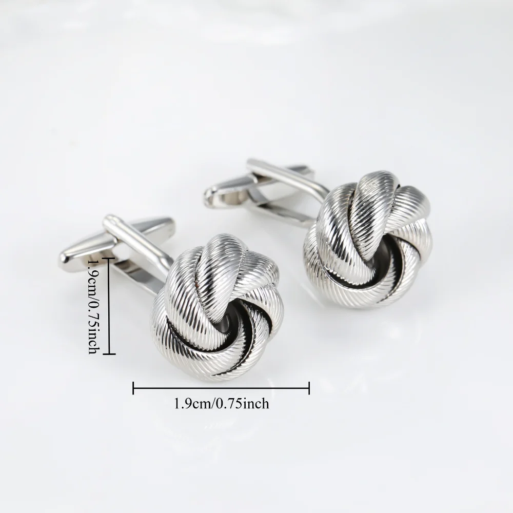 Step into sophistication with this pair of metal knot cufflinks, perfect for elevating your formal or fashionable attire. Crafted from durable alloy, these cufflinks feature a textured, twisted rope design that adds depth and richness to your look. Available in a striking golden hue and a sleek silvery option, they reflect high-polish shine, making them suitable for any high-end suit, shirt, or designer ensemble. The overall vintage-inspired knot motif symbolizes strength and unity, offering a timeless appeal. Whether you’re dressing for an important event, a business meeting, or a DIY fashion project, these cufflinks offer versatile style options, ensuring you make a refined statement wherever you go. Their substantial size and detailed craftsmanship guarantee both durability and elegance.