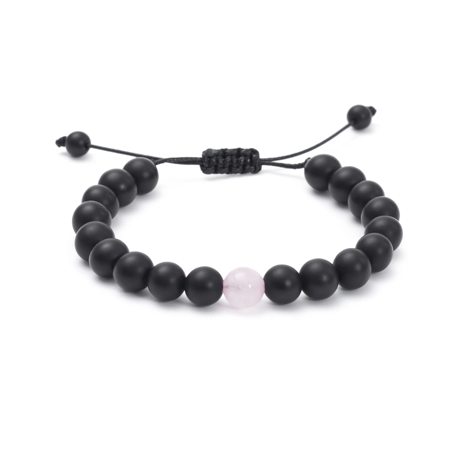- Made from high-quality natural stones such as 8mm black matte agate and rose quartz for refined beauty and durability.