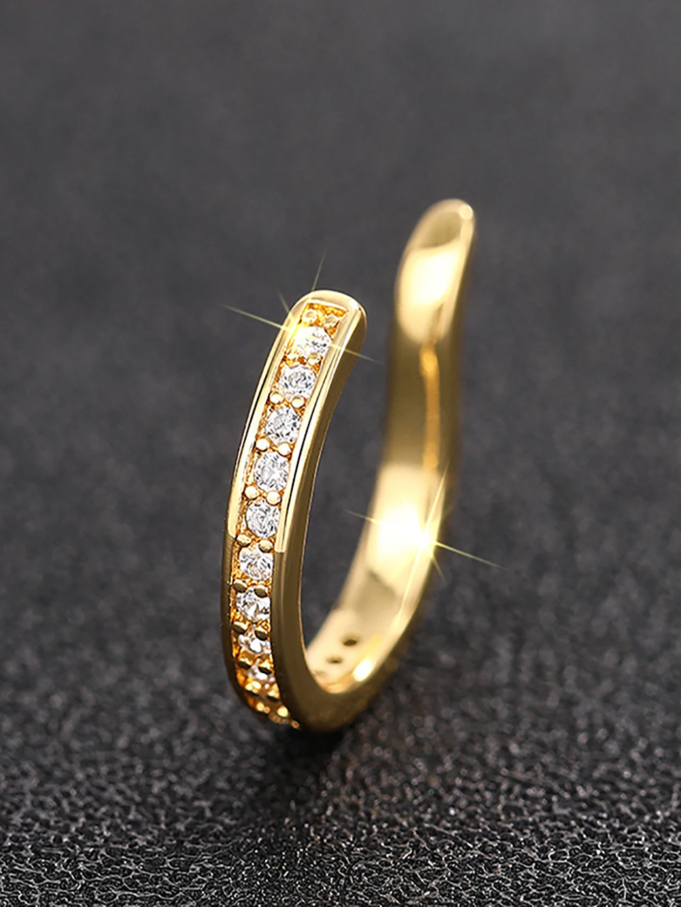 - Adorned with round cubic zirconia stones along the outer edge, providing a sparkling, high-end look at an affordable price.