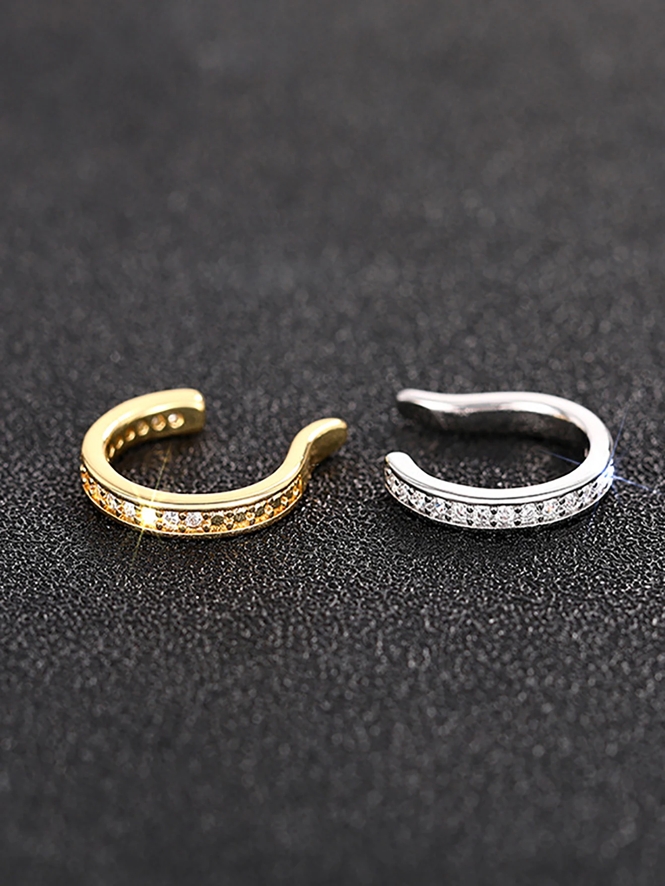 Discover the perfect blend of sophistication and simplicity with this stylish clip-on ear cuff. Crafted from durable copper alloy and accented with sparkling cubic zirconia stones, this accessory is designed to elevate any outfit. Whether you prefer a classic gold tone or a sleek silver finish, these cuffs provide a luxurious look without the need for piercings. Their minimalist yet chic design offers a comfortable fit that clips securely onto the ear cartilage, making them ideal for everyday wear or special occasions. The shimmering stones catch the light beautifully, adding a touch of glamour to your appearance. These versatile earrings are an effortless way to enhance your fashion statement, giving you a confident and trendy look easily.