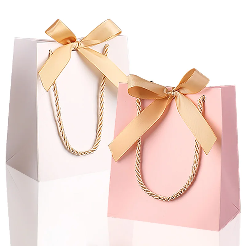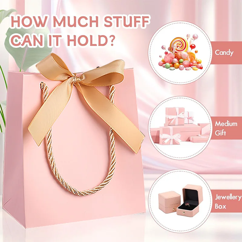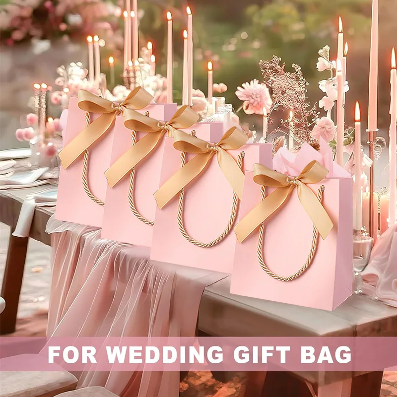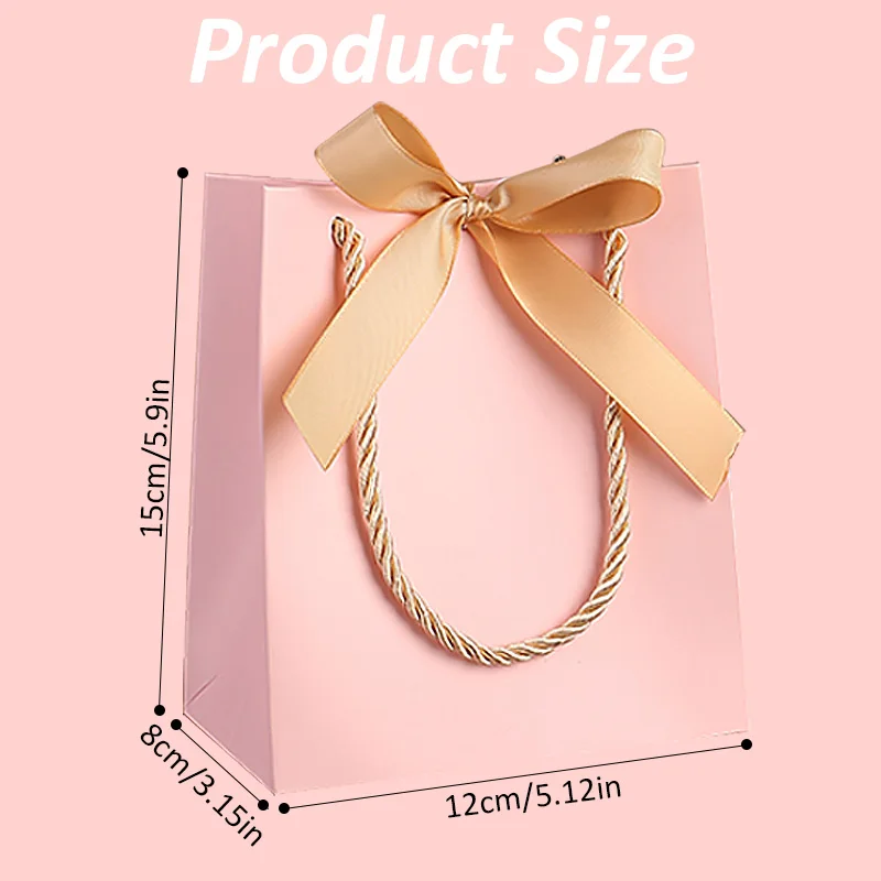 Elevate your gift-giving with this set of 5 or 10 paper gift bags available in white, pink, or a charming mix of both, featuring delicate butterfly knots that add a touch of elegance. Each bag measures approximately 10cm wide, 8cm deep, and 12cm high, making them perfect for small presents at weddings, birthdays, Mother’s Day, and other celebrations. Crafted from durable paperboard, these bags are chemically safe, customizable if needed, and designed to combine style and functionality effortlessly. The sleek, minimalist design with soft pastel colors and refined tied butterfly knots creates an aesthetic that’s both charming and versatile, ensuring your gifts leave a memorable impression.
