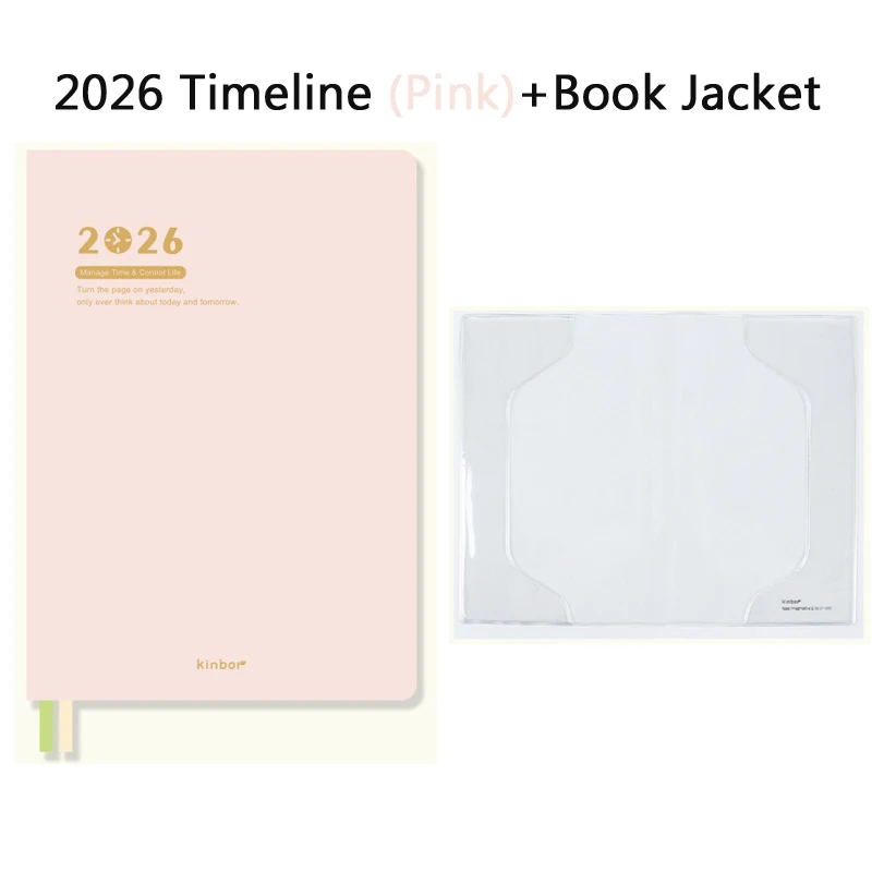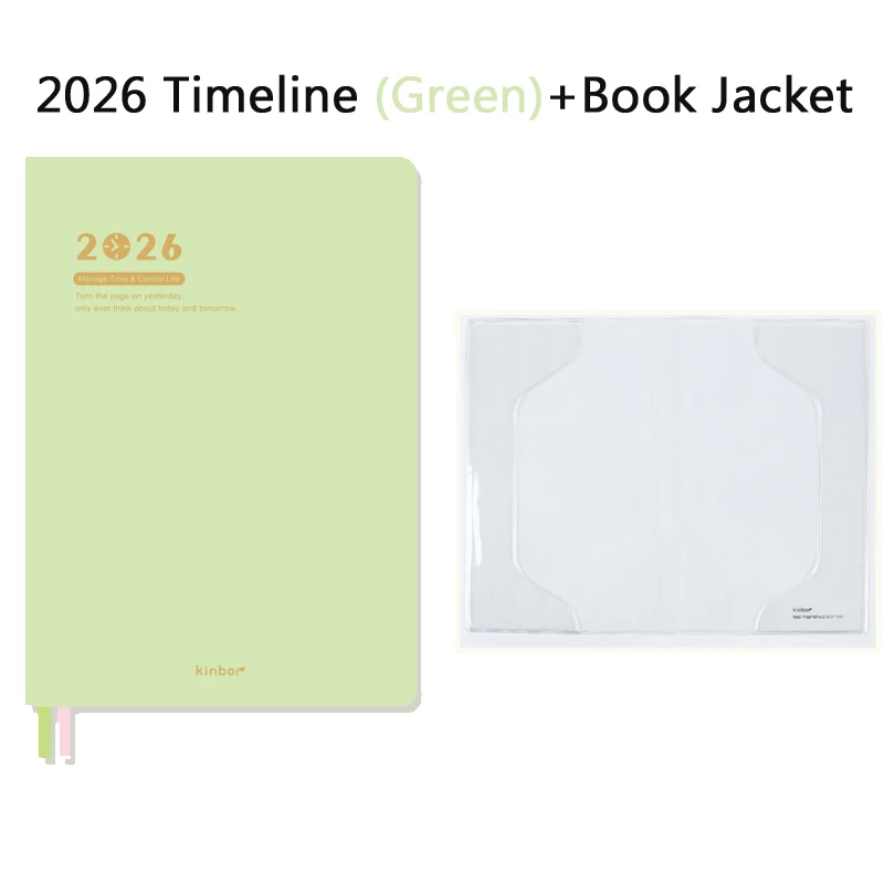 Experience elegant organization with the 2026 Kinbor Timeline Planner, featuring a soft PU leather cover in pastel tones of green, mint, orange, or pink, measuring 148x210mm (A5 size). Inside, 112 sheets of 52g Bachuan paper provide 224 pages of space for calendars, monthly plans, weekly schedules with sticker pages, yearly overviews, and timeline features. Options include covers with or without clear PVC covers for added durability. Its minimalist design with clean lines, subtle gold embossing, and smooth matte finish exudes modern elegance, making it a perfect gift for birthdays or Teachers’ Day. Visualize yourself planning your year with style and ease using this beautifully crafted organizer.