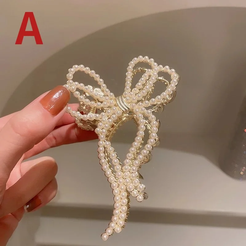Imagine elevating your hairstyle effortlessly with this luxurious pearl bow hair clip. Designed to add a touch of sophistication to any look, it features a stunning geometric hollow pattern adorned with shiny pearls and delicate crystal accents. Its large size, measuring 10.4 x 6.2 cm, makes it a statement piece that will draw attention to your hairstyle. Crafted from high-quality alloy, this accessory combines elegance with durability. Whether you want to create an updo or secure loose hair, this clip offers both beauty and function. Its ornate design pairs perfectly with formal outfits or everyday feminine wear. Feel confident knowing you're wearing a carefully crafted accessory that embodies style and grace.