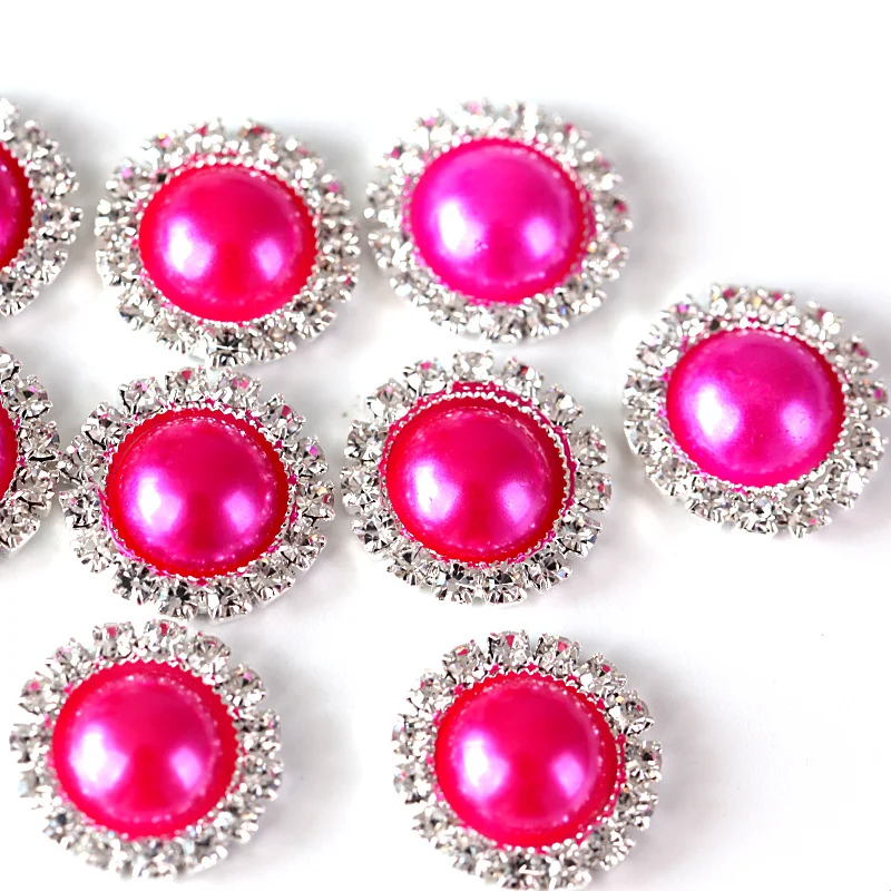 Imagine adding a touch of sparkle and vibrant color to your crafting projects with this set of this pearl rhinestone buttons. Each button features a glossy resin pearl in lively hues like lime green, cyan blue, purple, hot pink, and more, complemented by a border of shimmering rhinestones that catch the light beautifully. With a sleek round shape and flat back design, these buttons are easy to sew onto wedding dresses, accessories, shoes, bags, or scrapbooks. Their 15mm diameter makes them perfect for detailed embellishments, providing a mix of modern style and classic elegance. Whether you’re decorating special garments or creating unique jewelry, these buttons are versatile and reliable, helping you realize your creative vision effortlessly.