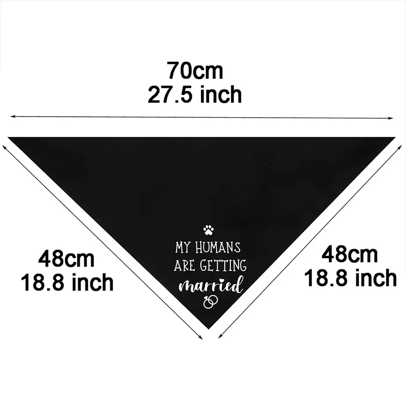 This versatile dog bandana scarf, crafted from durable polyester fiber, measures 15 to 52 cm in length and fits small to large breeds like Labrador, Golden Retriever, and German Shepherd. Featuring a stylish letter print pattern, it includes a safe breakaway quick-release clasp and is suitable for all seasons. Available in a variety of black and white shades, these fashionable accessories are perfect for special occasions such as weddings, engagements, parties, and photo shoots. Ideal for use as a wedding honor accessory, Bachelorette decoration, or gift, they add a charming, elegant touch to your pet’s attire while ensuring comfort and safety.