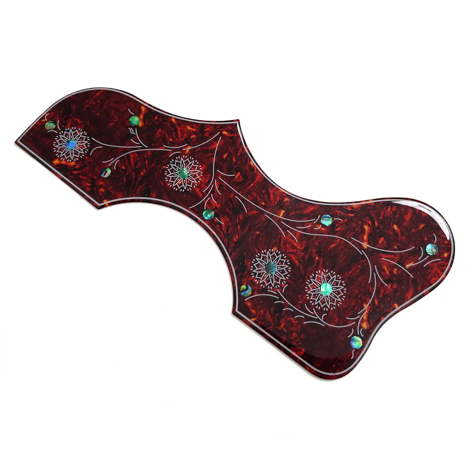 Transform your acoustic guitar’s appearance with this exquisitely designed pickguard, crafted specifically for J-200 and SJ-200 models. With its rich, glossy finish and intricate detailing, it elevates your guitar’s vintage charm while offering durable protection. The deep, vivid colors and artistic patterns add a sophisticated touch, making your instrument stand out on stage or in the studio. Easily installed thanks to its self-adhesive backing, this 2mm thick pickguard seamlessly fits the guitar’s contours, providing long-lasting scratch resistance against everyday wear and tear. Whether you prefer the warm, tortoiseshell-inspired design or the vibrant red marbled pattern, you will enjoy both beauty and functionality. Elevate your musical experience today.