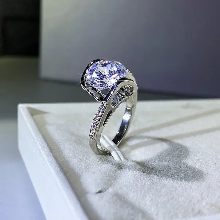 Elegant Platinum Women’s Zircon Ring with 2-Carat Gem