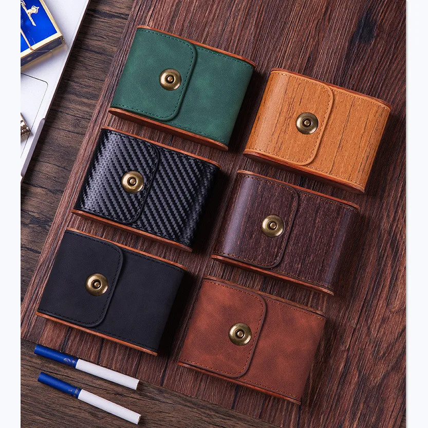 Imagine yourself confidently carrying this elegant cigarette case wherever you go. Crafted from durable PU leather with a refined frosted finish, this case combines practicality with timeless style. Its compact, clamshell design measures 71mm by 98mm by 29mm, perfectly fitting into pockets or bags. The vintage-inspired round metallic snap button adds a touch of sophistication while securing your cigarettes safe from pressure and moisture. Available in versatile colors like black, green, coffee, and apricot, including wood grain and carbon fiber textures, it caters to both men and women. Whether for daily use or special occasions, this case keeps your 20 cigarettes protected and accessible with ease.
