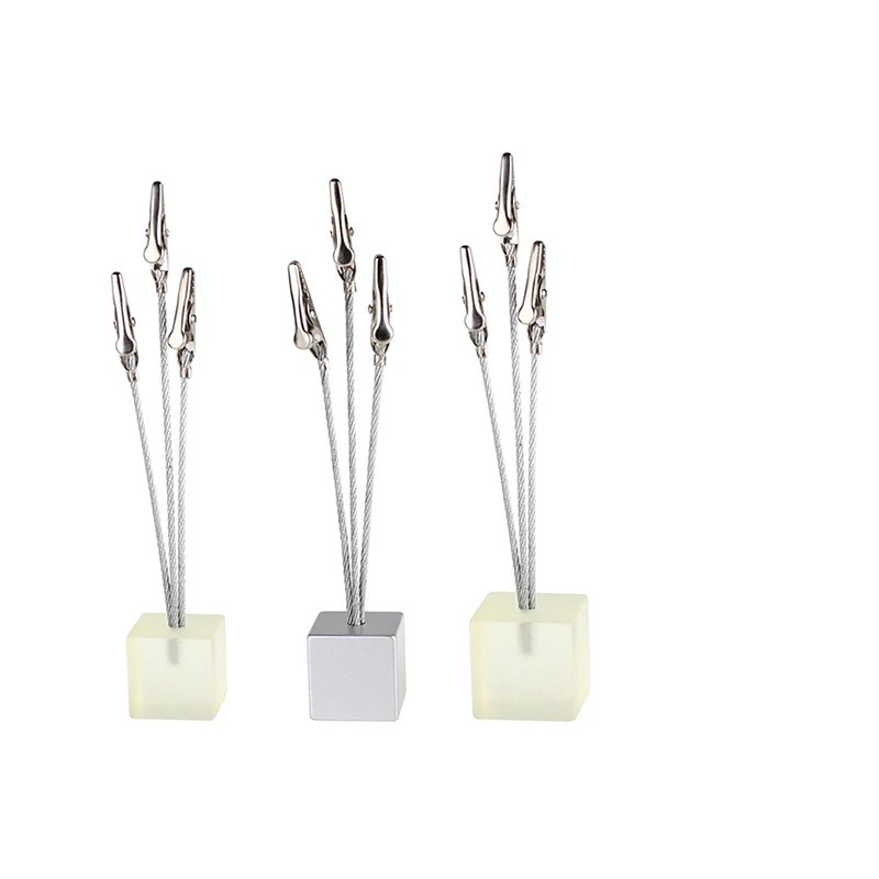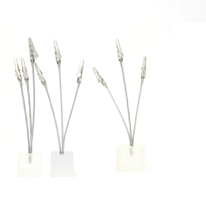 Imagine transforming your workspace with this sleek and modern memo clip holder, designed to keep your notes, photos, and cards organized effortlessly. Crafted from durable resin, it features a square-shaped base available in three stylish options: small silver, small transparent, and large transparent, complementing any desk decor. The alligator clamp clips, with their shiny silver finish, securely grip your papers at different angles thanks to flexible metal wires, adding a touch of playful sophistication to your workspace. Whether for business or personal use, this accessory offers a minimalist yet refined aesthetic, blending European and American design influences. It's a practical tool that elevates your organization while enhancing the visual harmony of your desk area.