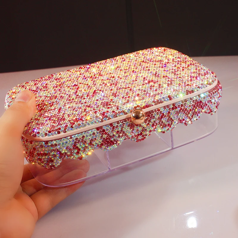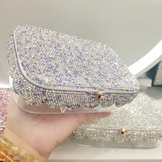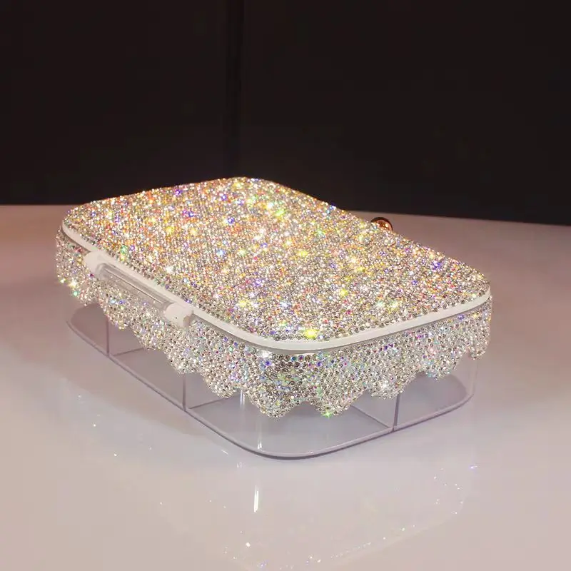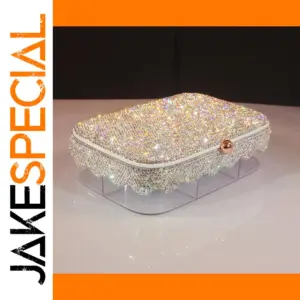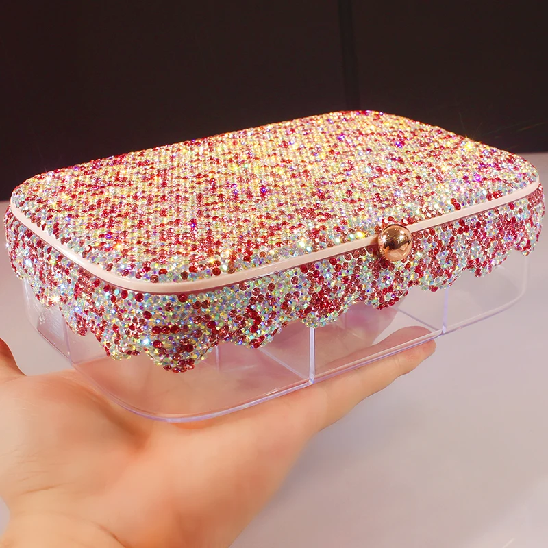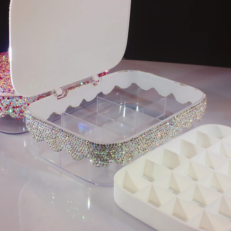 Elevate your jewelry organization with this elegant portable acrylic jewelry box, measuring 17cm x 11cm x 4.6cm, featuring hand-set crystal diamond accents for a luxurious sparkle. Its single-layer design maximizes space for rings, necklaces, and earrings, blending practicality with glamour. Crafted from glossy, transparent acrylic, it offers a modern, sophisticated look, enhanced by densely covered rhinestones that reflect light from all angles. Available in charming shades of pink, violet, and white, this eco-friendly and reusable makeup organizer is perfect for women, girls, and men who appreciate a touch of high-end style in their everyday accessories.