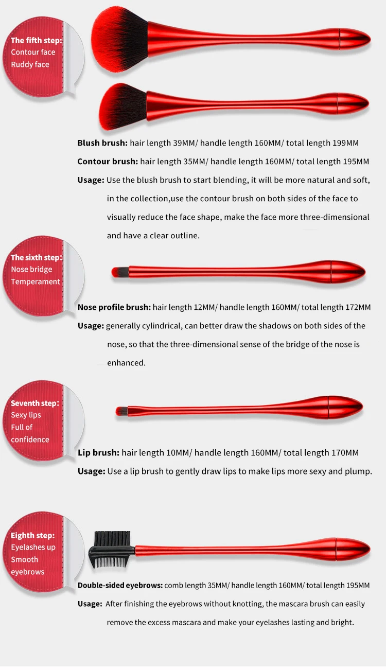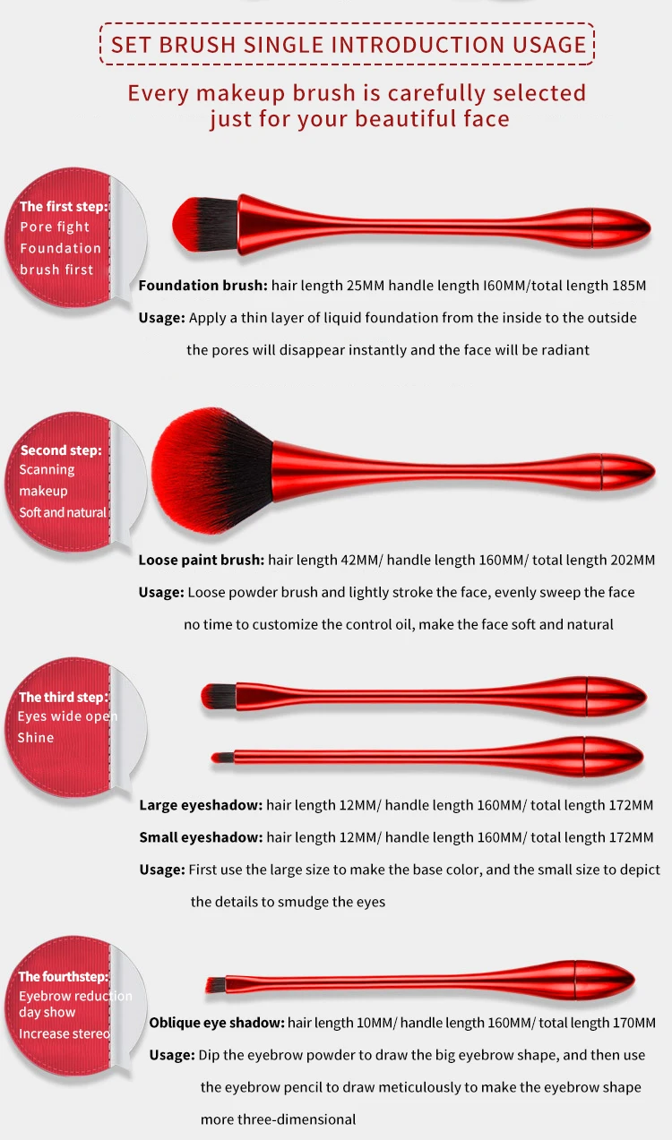 - Available in red opp bag or gold opp bag packaging, offering a luxurious aesthetic for everyday use or gifting. Each brush is designed for durability and long-term use.