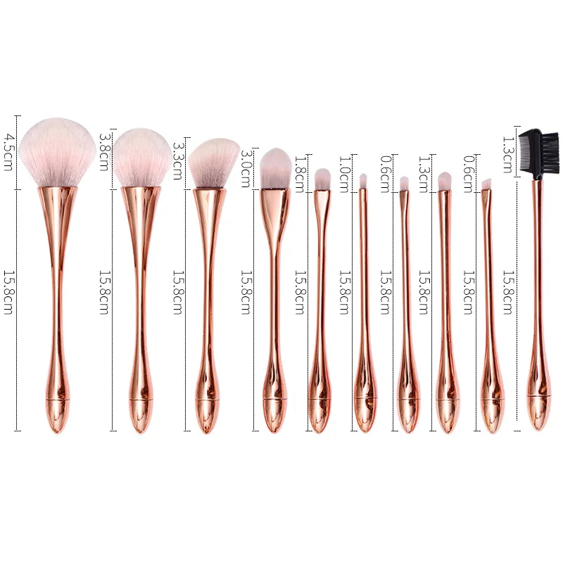 - Includes 10 high-quality brushes with dense, soft synthetic fibers perfect for precise makeup application and blending. Comfortable to hold handles are made of polished, electroplated plastic in rose gold finish.