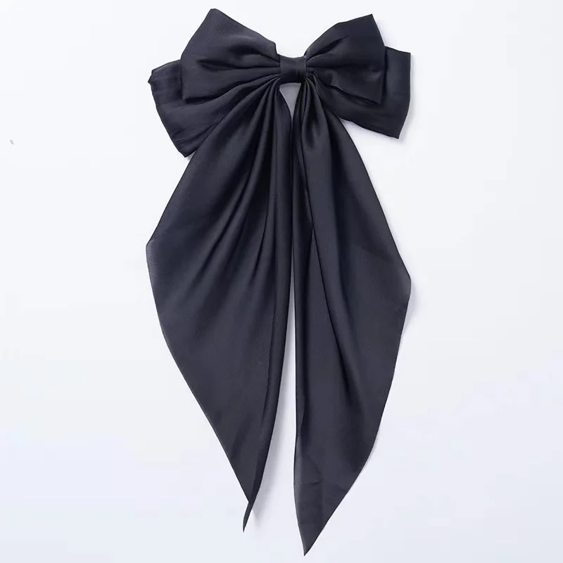 Transform your look with this stunning satin ribbon bow hair clip, designed to add a touch of sophistication and charm to your hairstyle. Crafted from high-quality polyester fabric with a glossy satin finish, this accessory reflects light beautifully, giving you an elegant and polished appearance. Its large, bold bow design features wide loops and flowing tails that cascade gracefully, making it a perfect statement piece for any occasion. Whether you're dressing up for a special event or adding a stylish accent to your everyday outfit, this versatile hair clip offers an effortless way to enhance your overall look. Comfortable and easy to wear, it securely attaches with a spring clip, ensuring it stays in place throughout the day.