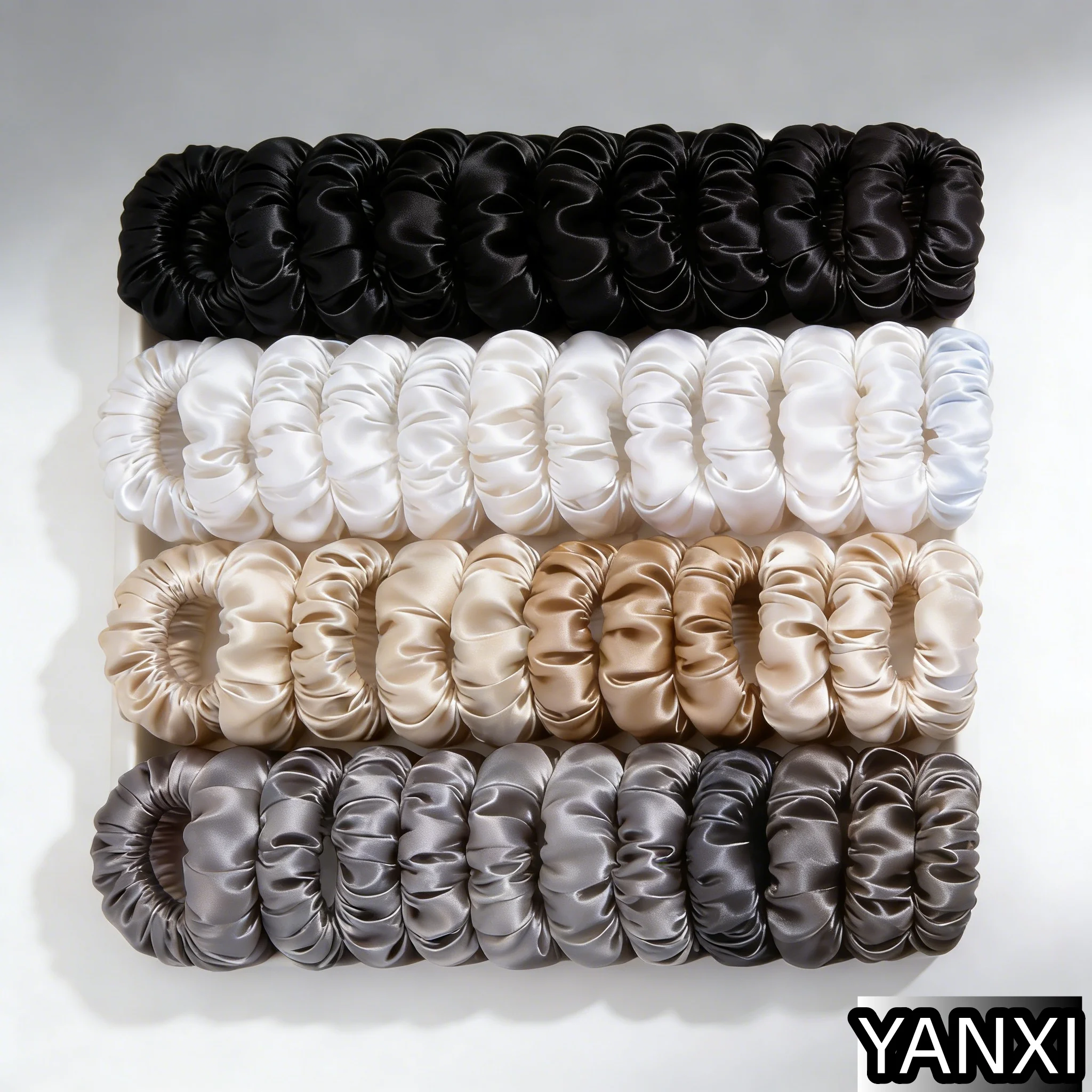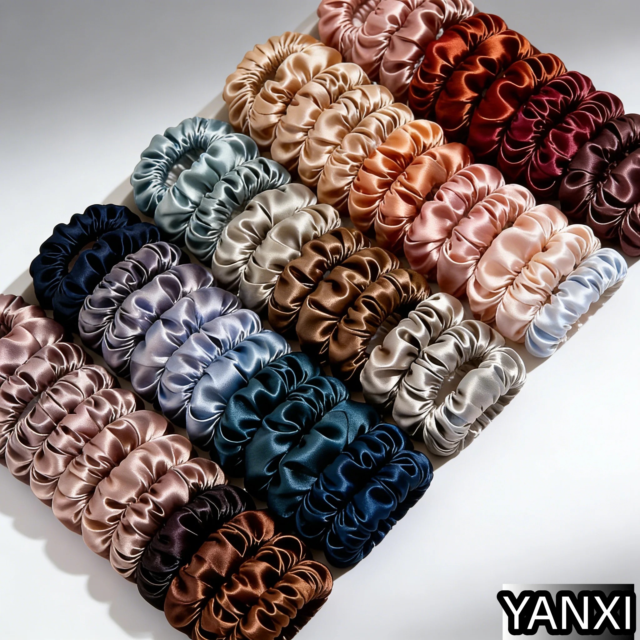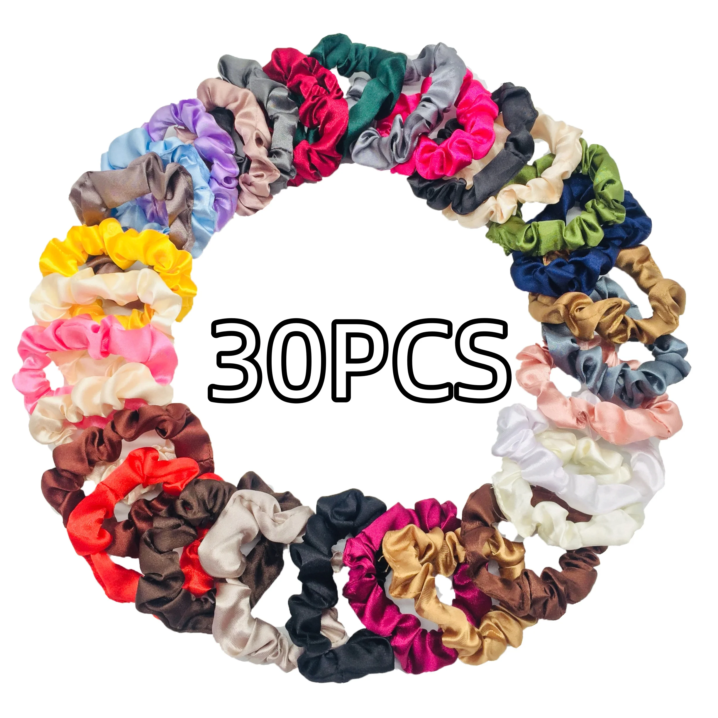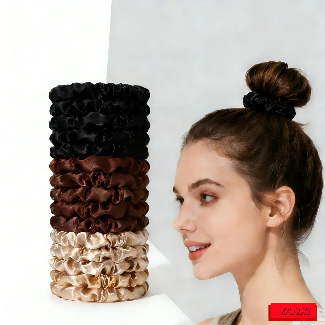 Elevate your casual style with these high-quality satin scrunchies available in 100 vibrant colors, including classic black, warm browns, and delicate pastel shades. Crafted from soft, lightweight polyester satin, each scrunchie measures 6.5 cm in diameter and features a smooth, glossy finish with a ruffled, circular woven pattern. Designed for women, these versatile elastic hair ties are perfect for all seasons and add a touch of elegance to everyday looks. Suitable for multiple styling options, they offer durability, flexibility, and a luxurious shine that enhances your natural beauty while providing a comfortable, stylish accessory for any occasion.