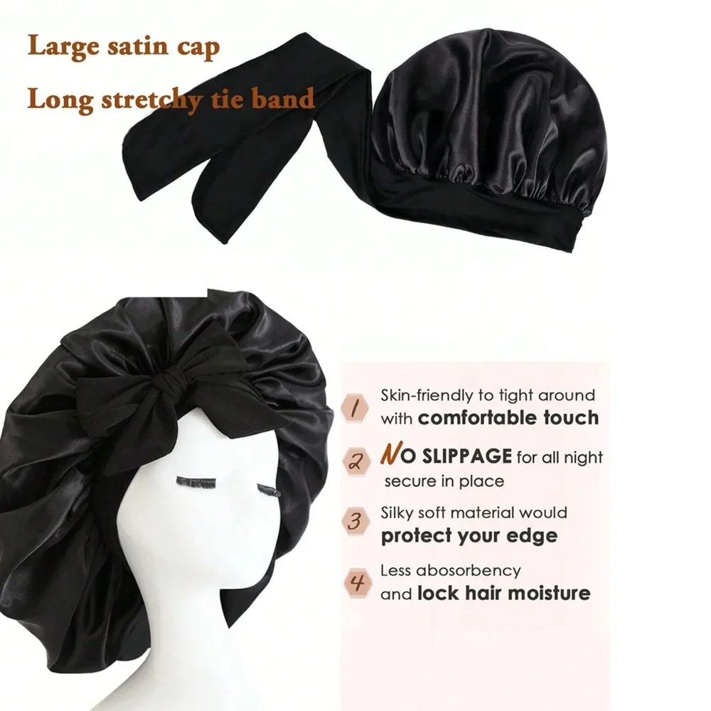 - Multipurpose design functions as a night bonnet, shower cap, or hair wrap cover, safeguarding hair from damage, frizz, and moisture loss with style.