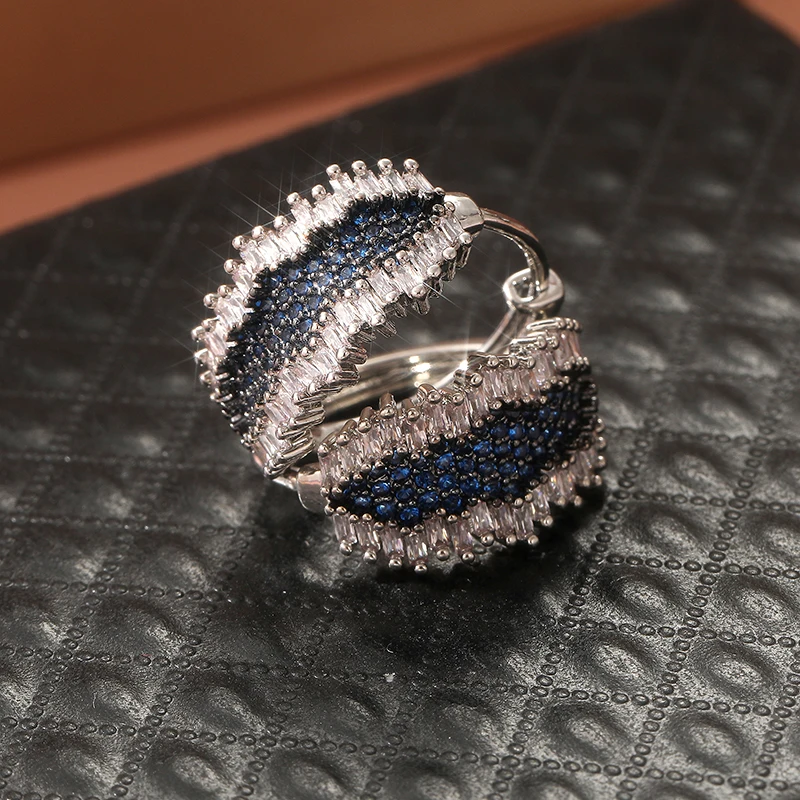 - Inlaid with densely packed deep blue cubic zirconia stones inside the hoop, creating a textured, sparkling interior that catches light beautifully from every angle.