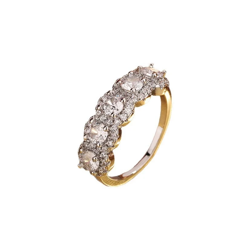 Imagine yourself wearing this stunning women's ring that effortlessly combines modern style with exquisite detail. Crafted from durable silver with a luxurious gold-filled coating, it offers a long-lasting shine and sophisticated appeal. The ring features a bright, white round zircon stone set in a sleek bar setting, surrounded by smaller zircon accents that evoke a halo effect. Its irregular, fashionable pattern adds a unique touch, making it perfect for special occasions like weddings, engagements, or parties. The slim band tapers gently to highlight the central stones, ensuring a delicate yet eye-catching look. Wearing this piece enhances your elegance and confidence, making every moment feel exceptional—a truly luxurious accessory for yourself or someone special.