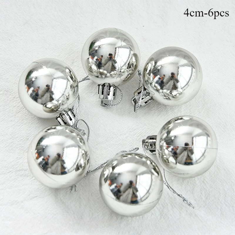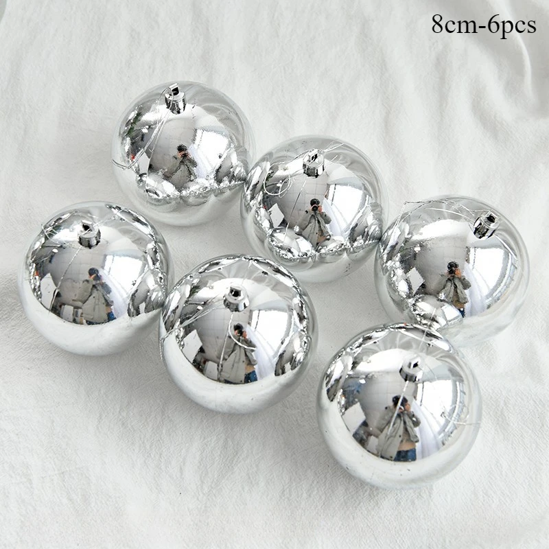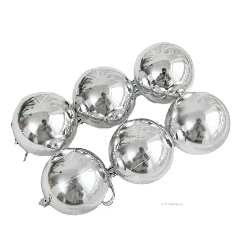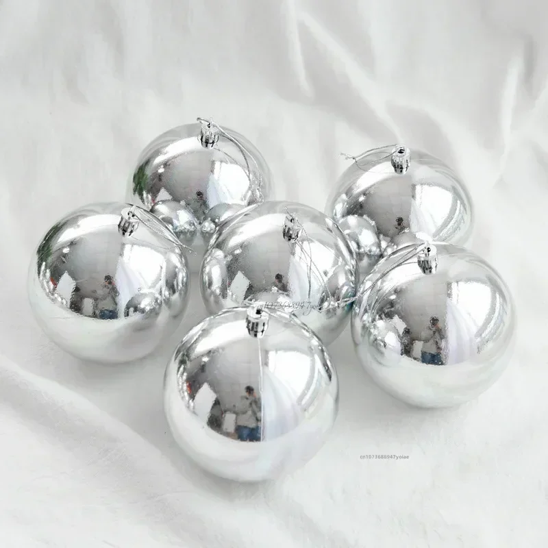 Elevate your holiday decor with these stunning electroplated silver plastic Christmas ornaments, available in sizes from 4cm to 15cm. Crafted with a highly reflective, mirror-like finish, each spherical ball captures and reflects surrounding lights and surroundings, adding a touch of elegance and modern sophistication to any celebration. The set options include six-piece packages for 4cm, 6cm, 8cm, and 10cm ornaments, along with single pieces in 12cm and 15cm sizes, making it easy to customize your festive display. Designed for Christmas, weddings, or parties, these glossy, durable decorations are perfect for creating a bright, luxurious atmosphere.