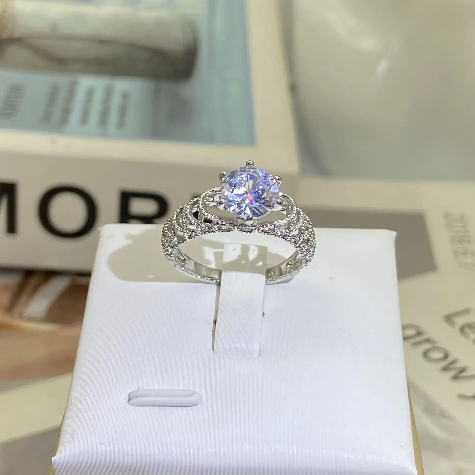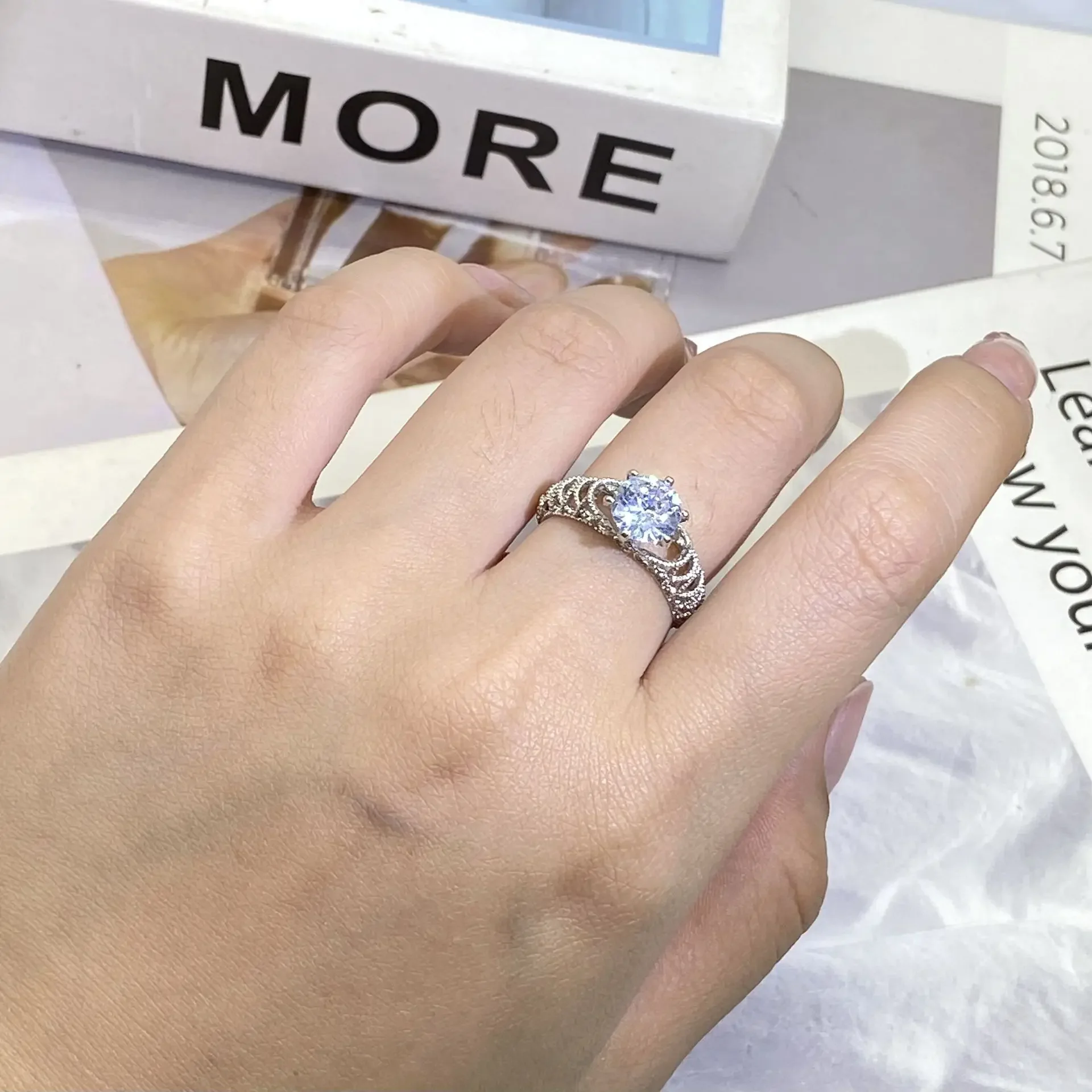 - Central large, clear cubic zirconia stone, approximately 6mm or 8mm in diameter, creates a dazzling focal point that catches the light beautifully.