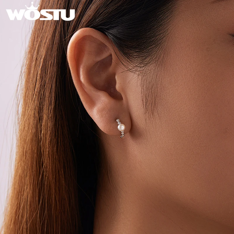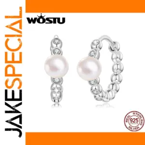- Centered on each hoop is a lustrous white pearl measuring approximately 0.4 to 0.5 centimeters, adding a classic touch of luxury and refinement.