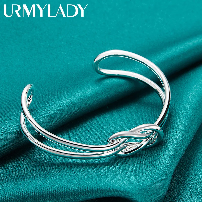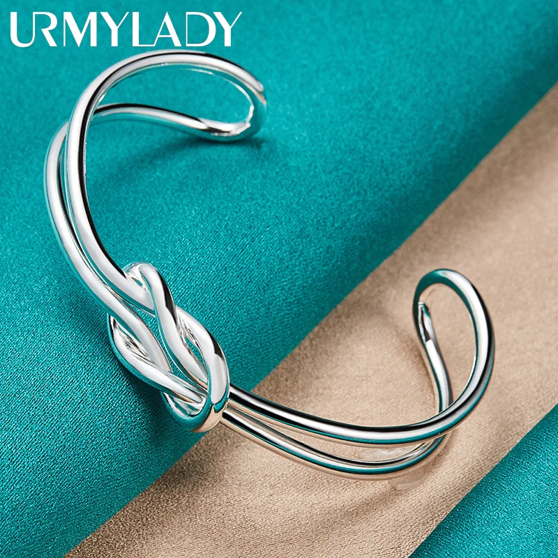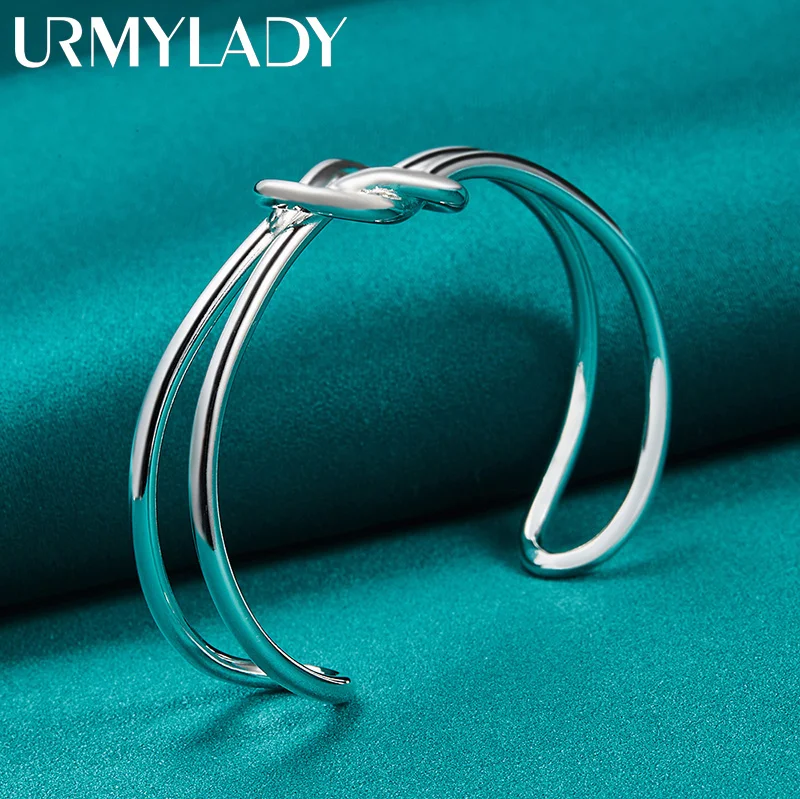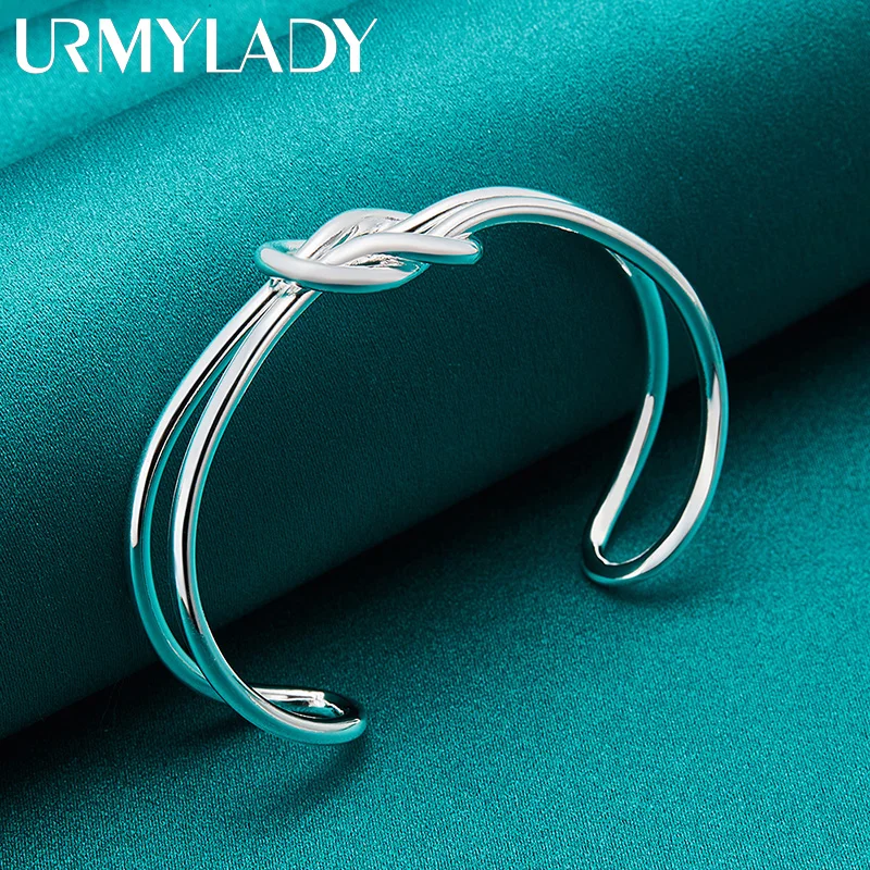Step into sophistication with this stylish, high-polish sterling silver cuff bracelet. Crafted from 925 sterling silver, it features a sleek, reflective surface that accentuates its modern design. The centerpiece is a beautifully intertwined knot motif, formed from curved silver bands, representing unity and elegance. Its wide, slightly curved shape contours naturally to your wrist, giving a comfortable yet refined fit. Perfect for both casual outings and formal events, this bracelet adds a touch of contemporary class. Its adjustable open-ended design allows for a customizable fit, ensuring comfort without sacrificing style. Lightweight at just 15 grams, it’s easy to wear and maintain, making it an ideal accessory for daily or special occasions. Elevate your jewelry collection with this versatile piece.