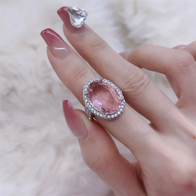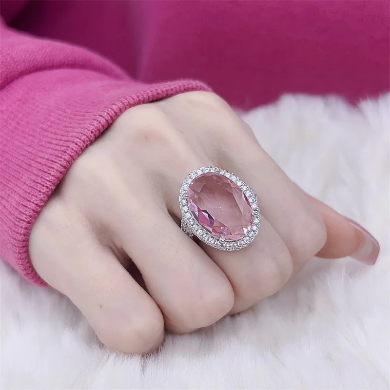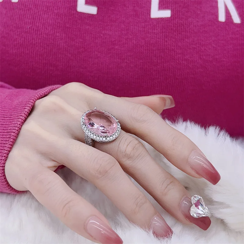 Imagine yourself wearing this stunning wedding ring, expertly crafted from 925 sterling silver that shines with a polished finish. The centerpiece is a beautifully faceted oval-shaped rose quartz gemstone in a soft, deep pink hue that catches the light with every movement, creating a luminous sparkle. Encircled by a halo of tiny, clear zircon stones, the ring exudes a luxurious and sophisticated appeal perfect for special occasions like weddings, engagements, or parties. Its resizable band ensures a comfortable fit, making it a versatile choice for many. The delicate yet eye-catching design combines timeless elegance with modern style, allowing you to feel confident and graceful whenever you wear it. This piece is truly a symbol of love and beauty, crafted to cherish forever.