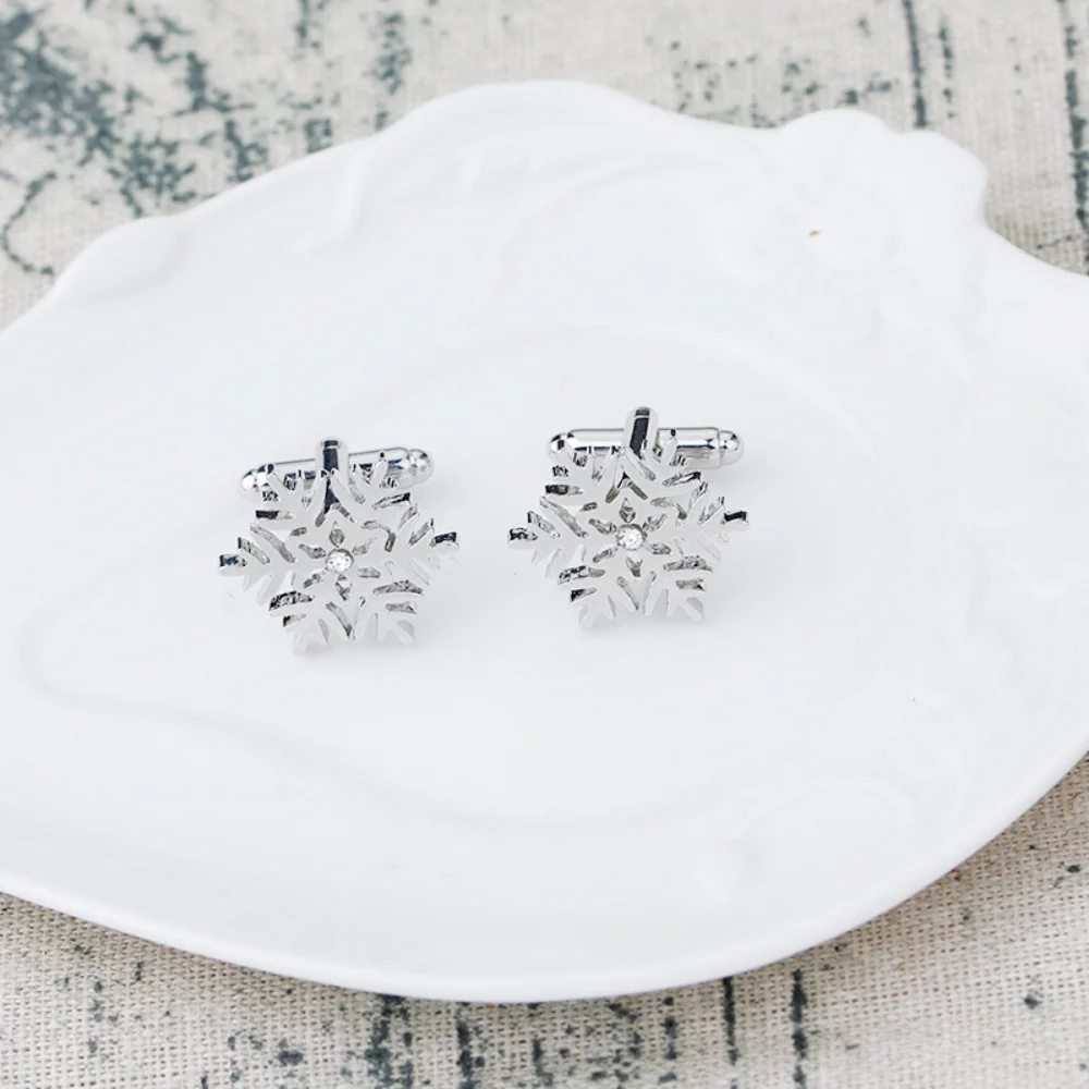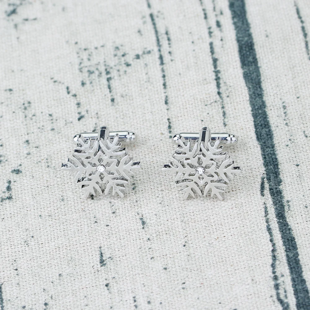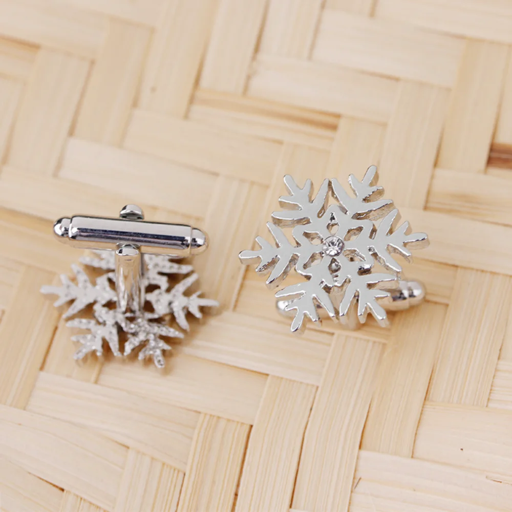 These exquisite silver three-dimensional snowflake cufflinks are the perfect accessory to enhance your wardrobe, adding a touch of elegance and sophistication for any occasion. Crafted from high-quality alloy, they feature intricate snowflake designs with sparkling diamonds or rhinestones at the center, illuminating your look with a hint of luxury. These unisex cufflinks complement a wide range of styles, from retro to trendy, making them suitable for everyone. Perfect for jackets, backpacks, or as DIY embellishments for clothing, they evoke the beauty of winter and can effortlessly elevate any outfit.