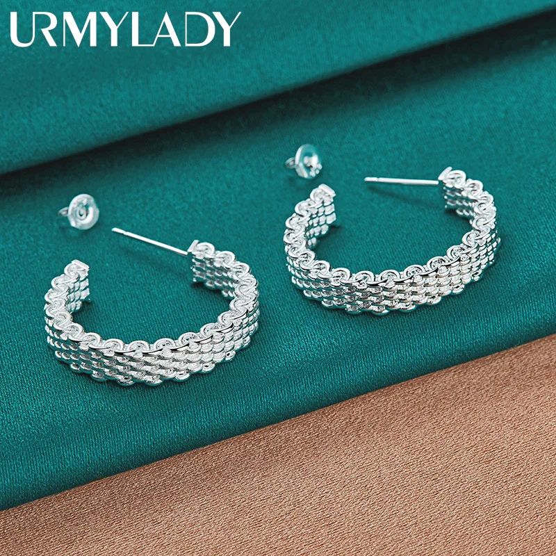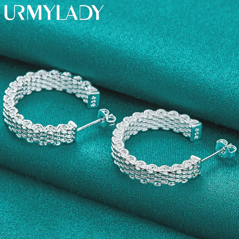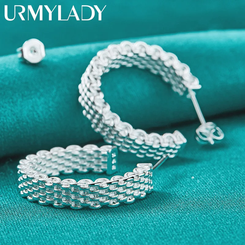 Elevate your style with these elegant 925 sterling silver stud earrings featuring a 25mm diameter circular design. Crafted with a textured woven mesh pattern, they exude a modern yet timeless appeal, perfect for parties and formal occasions. Weighing 10.40 grams, these lightweight earrings are equipped with secure push-back findings for comfortable wear. Their polished, reflective surface highlights fine craftsmanship, making them a versatile accessory that complements any ensemble. Designed with a classic geometric aesthetic, these earrings are certified with a GDTC certificate, free of gemstones or additional embellishments, and are suitable for women seeking sophisticated, contemporary jewelry.