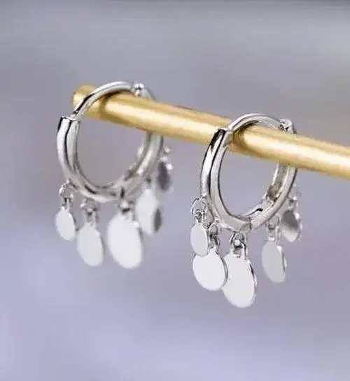 Imagine yourself effortlessly elevating your style with these stunning round disc tassel earrings. Crafted from high-quality platinum metal, they weigh just 0.5 grams for comfortable wear. The earrings feature a sleek silver finish that radiates sophistication and versatility. Dangling charms adorned with sparkling zircon stones create a captivating tassel effect, adding movement and a touch of playful elegance to your look. Whether for everyday elegance or special occasions, these earrings are designed to match any outfit with their trendy and refined style. Their push-back stud closure ensures a secure fit, promising both comfort and security throughout your day or night. Step into sophistication and let your style shine effortlessly.