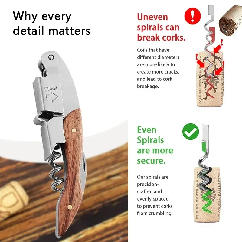 - Features a screw/worm for effortless cork removal, whether opening vintage wines or everyday bottles with ease and control.