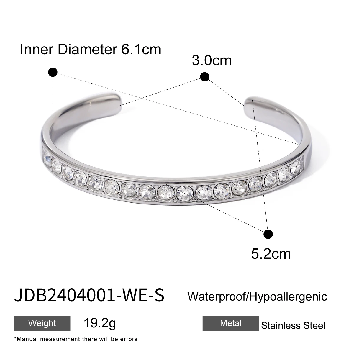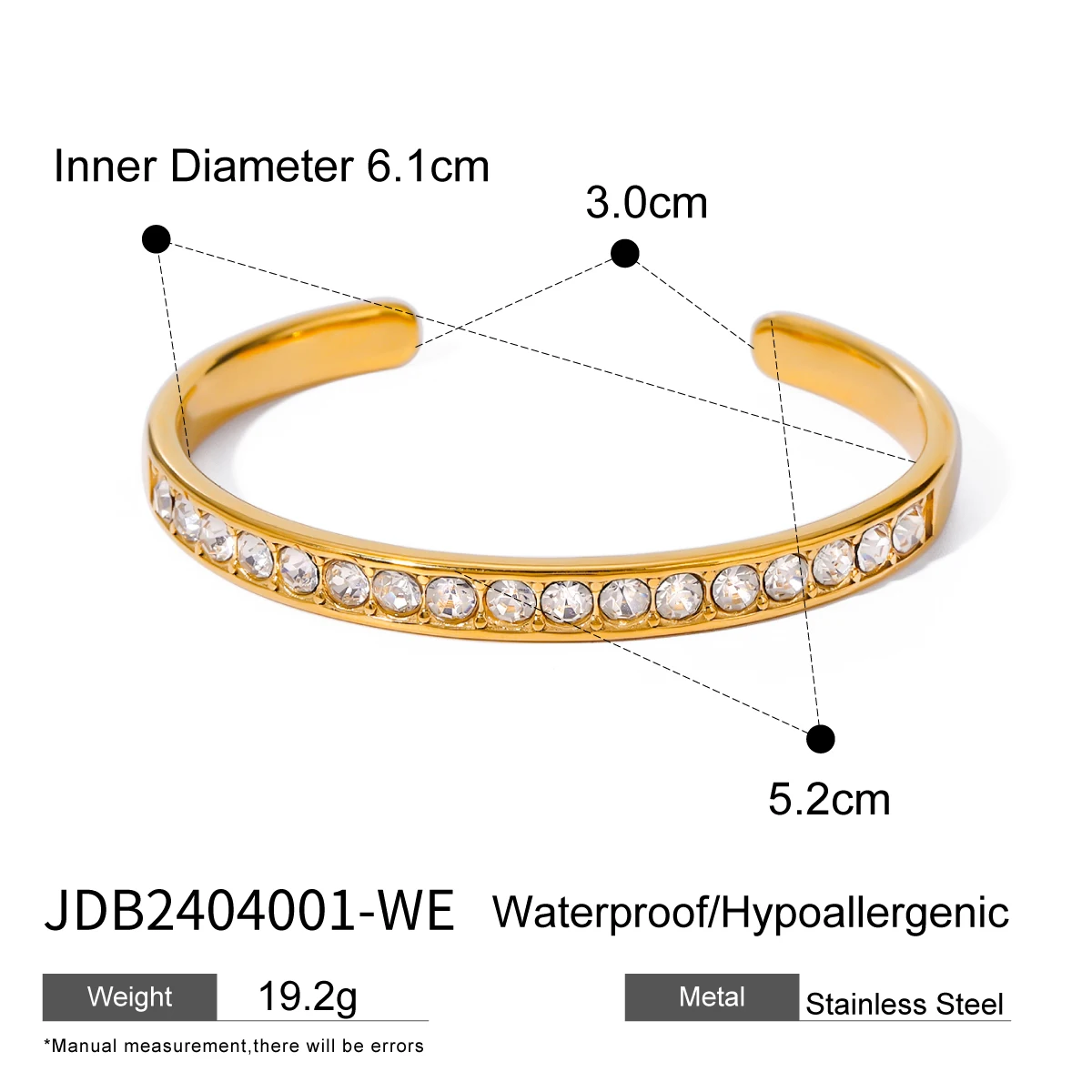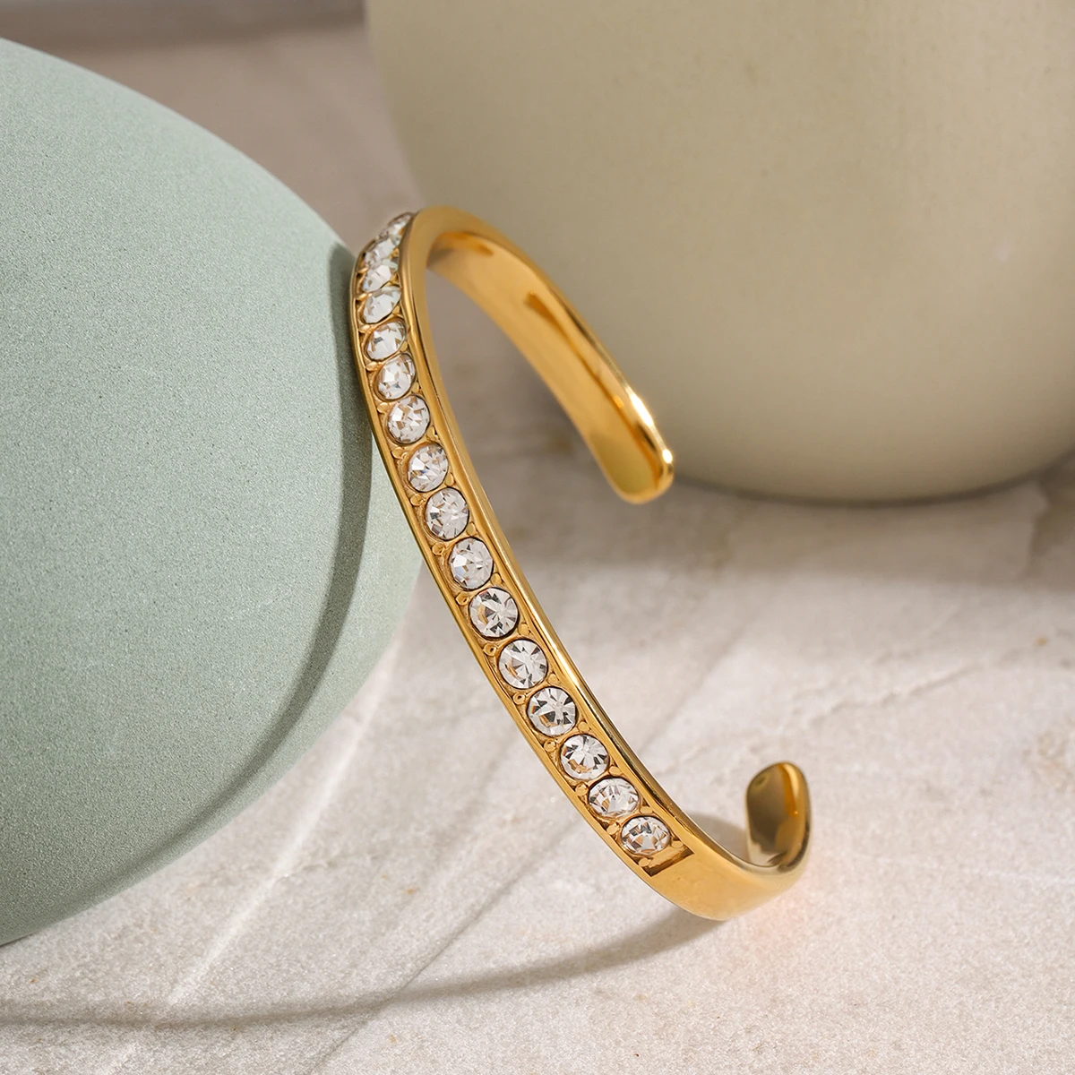 - Each bangle is decorated with a single row of round-cut zircon stones, evenly spaced and securely set in tension, offering a subtle but eye-catching shimmer.