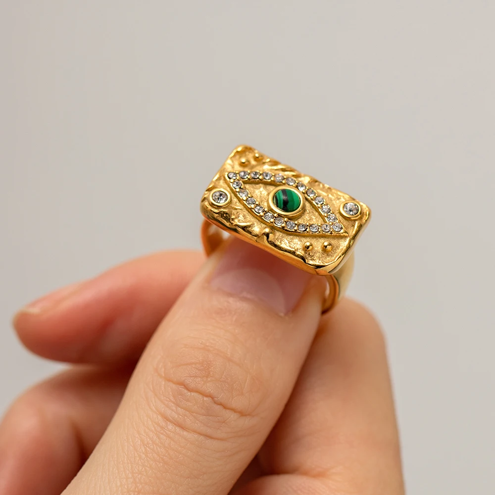 Step into a world of sophistication with this stunning jewelry set crafted from durable PVD stainless steel. Designed to captivate, the set features three distinct pieces: a delicate layered necklace, eye-catching earrings, and a versatile ring. The necklace showcases a trendy insect-shaped, eye motif pendant with vibrant green and purple stones, complemented by a fine, adjustable chain measuring 394mm. All components are nickel, lead, and cadmium-free, ensuring long-lasting brilliance and resistance to fading, scratches, and water. Whether you're dressing up for a party or adding a touch of flair to your everyday style, this set combines luxurious details with modern trends, making it the perfect choice for fashionable women.