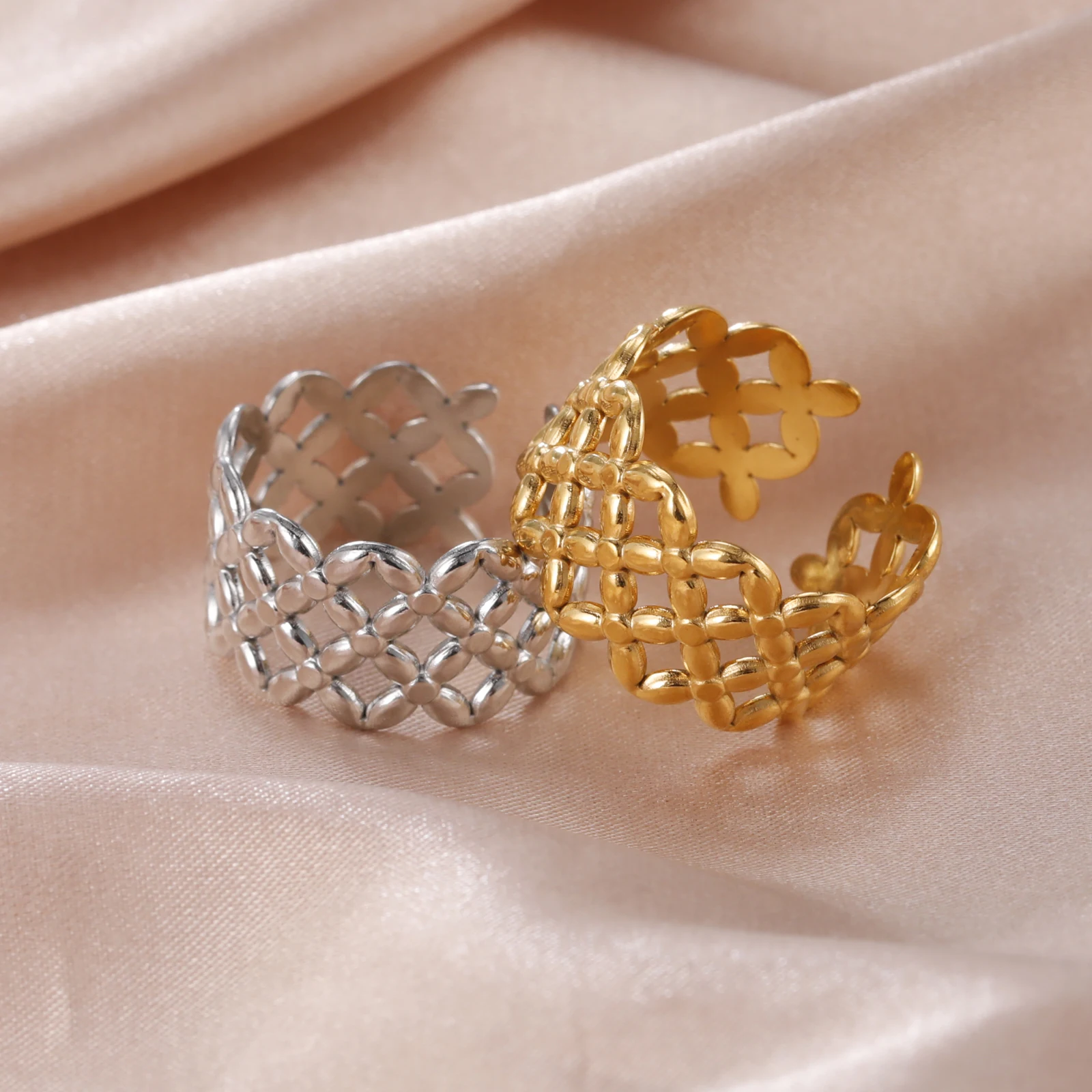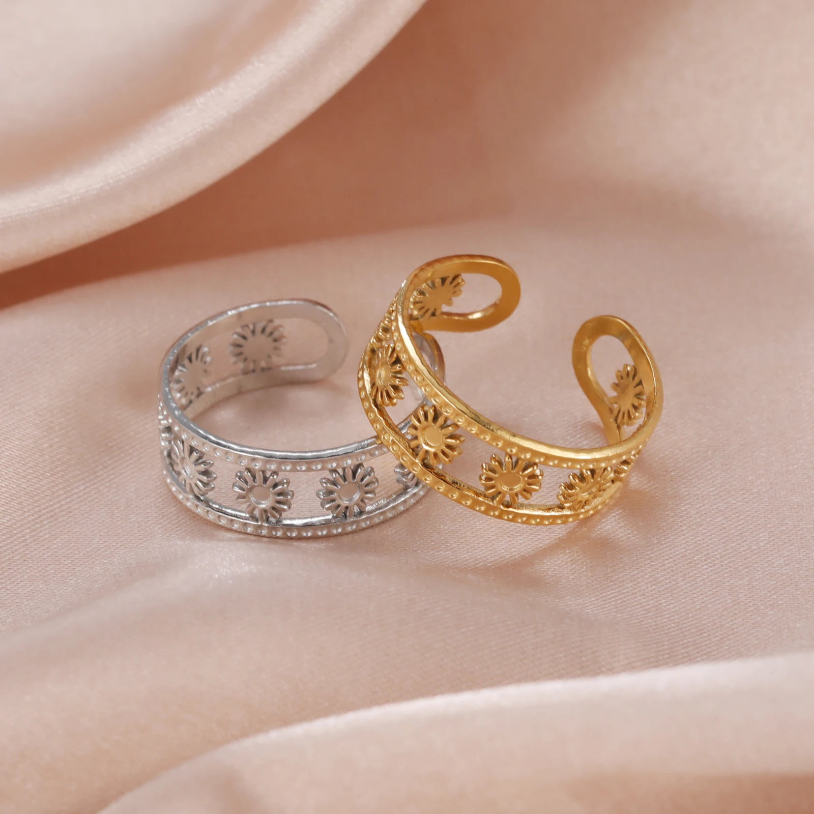 Immerse yourself in the modern charm of this stunning collection of adjustable women's rings, crafted from durable stainless steel with luxurious 18k gold plating options. Featuring 20 unique styles, these rings showcase elegant geometric patterns, including open rectangles and circles, alongside intricate motifs like sun and tree of life symbols. The versatile designs range from minimalist sleek lines to elaborate filigree and lattice-style detailing, offering a perfect accessory for every occasion—weddings, engagements, parties, or anniversaries. The adjustable feature ensures a comfortable fit for all fingers, while the polished finishes provide a shiny, eye-catching appearance. Made for daily wear, these rings combine fashion, durability, and symbolism effortlessly, making them an essential addition to your jewelry collection.
