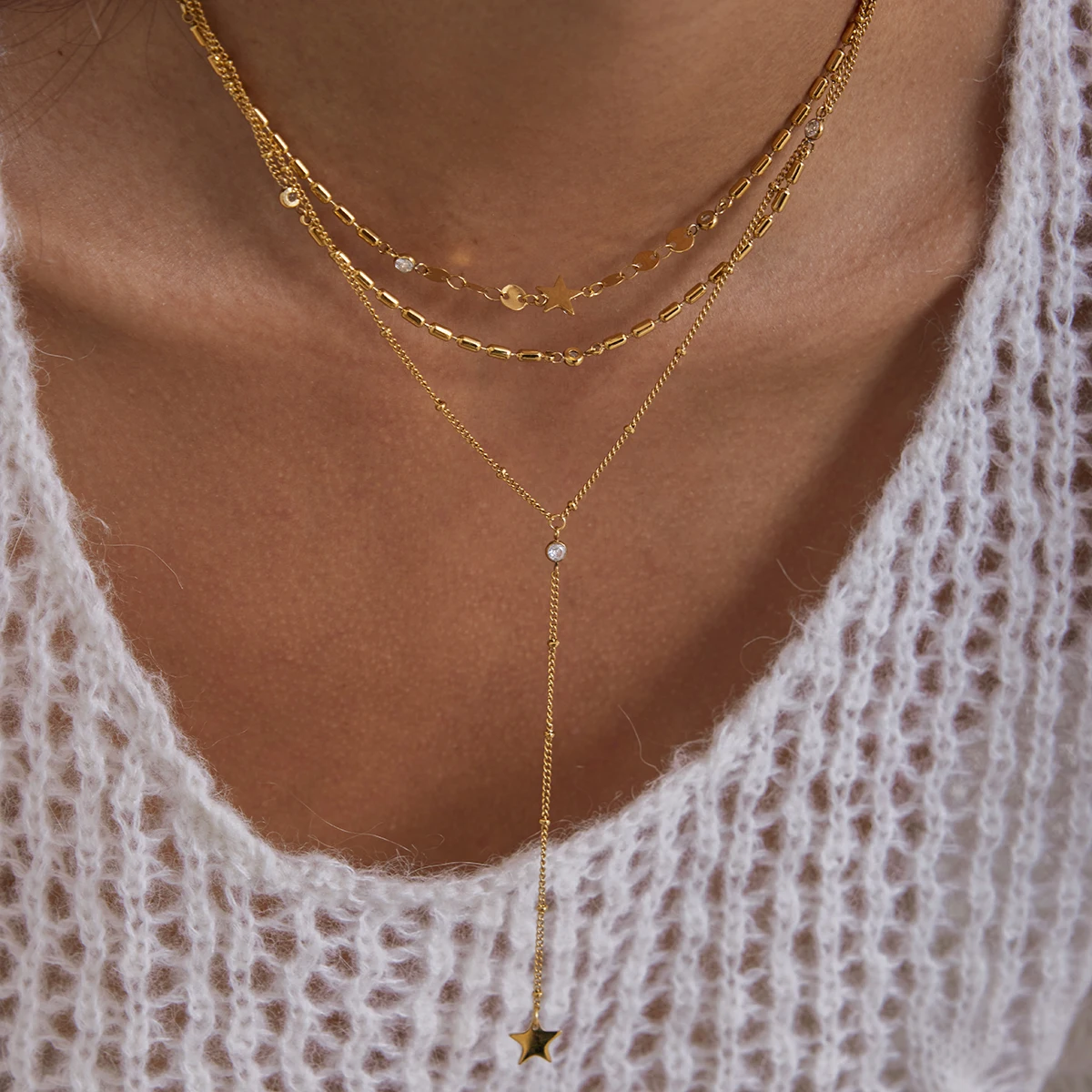 - This three-layer Y-shaped necklace is made from durable stainless steel with a polished gold-tone finish, blending elegance with longevity for everyday or special occasion wear.