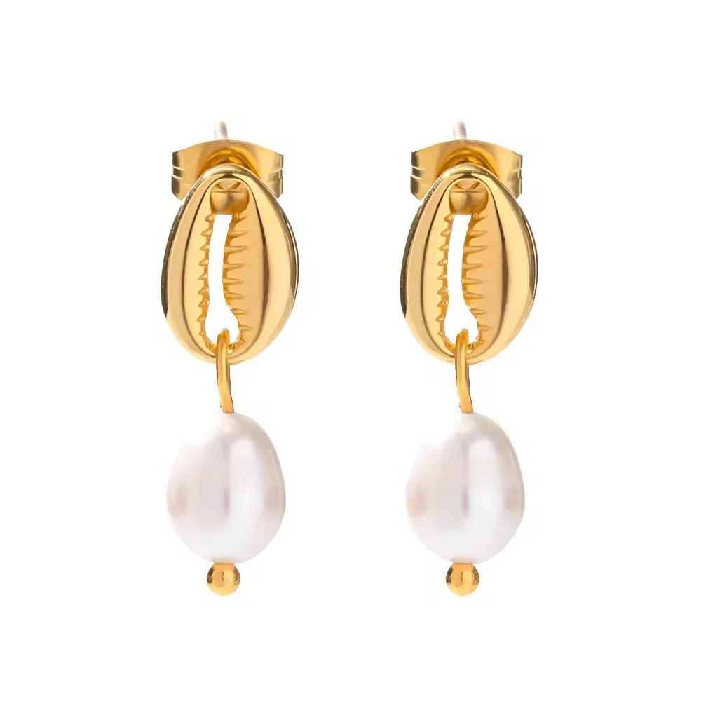 Experience a blend of sophistication and durability with this stunning pair of stainless steel earrings featuring PVD gold finish. Crafted with meticulous attention to detail, these earrings showcase a luxurious metallic gold hue that remains vibrant over time thanks to their anti-scratch, waterproof coating. Their geometric hoop design adds a modern touch, perfect for elevating everyday looks or adding glamour to special occasions. The lustrous pearl accents provide a delicate, feminine contrast to the bold gold, creating an eye-catching combination. Light yet substantial at approximately 15 grams, these earrings ensure both comfort and style. Their sturdy push-back clasp guarantees secure wear, making them a versatile addition to your jewelry collection that matches various fashion styles effortlessly.
