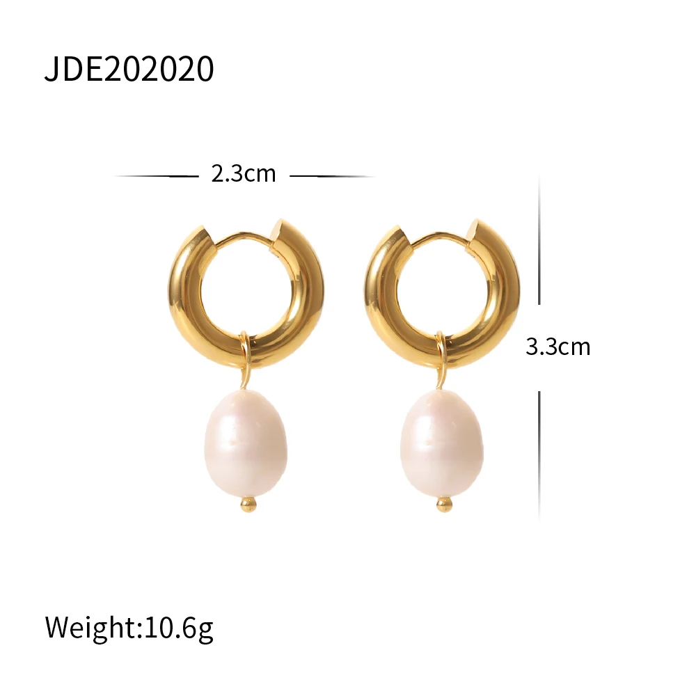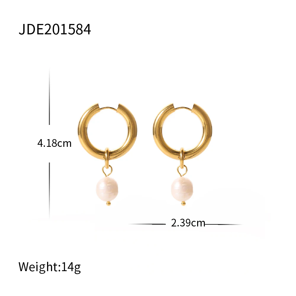 This Elegant Gold Stainless Steel Pearl Hoop Earrings